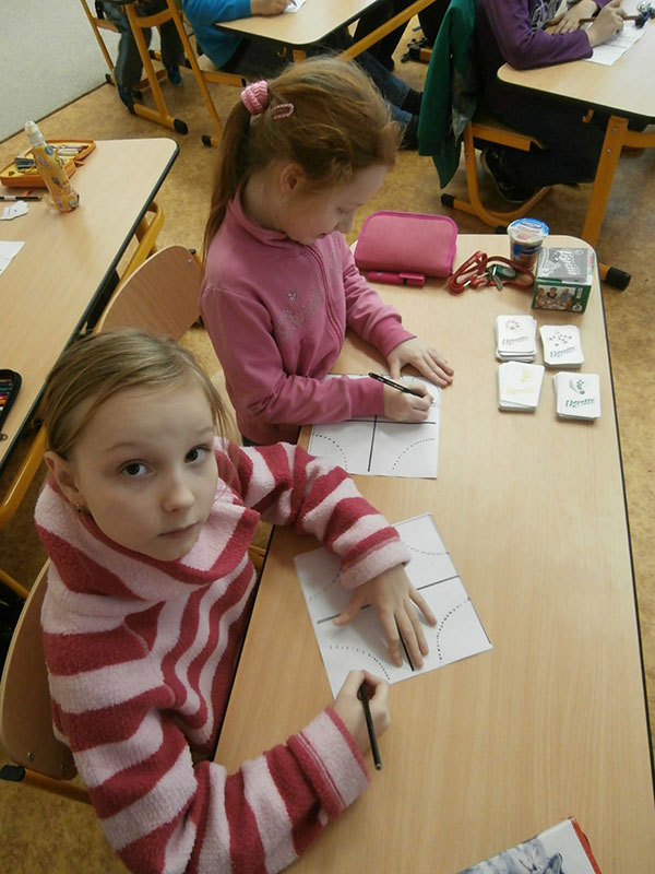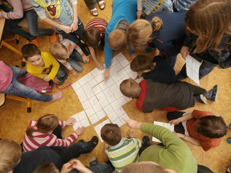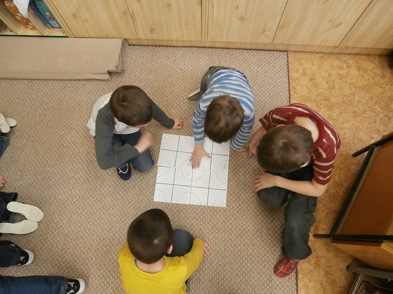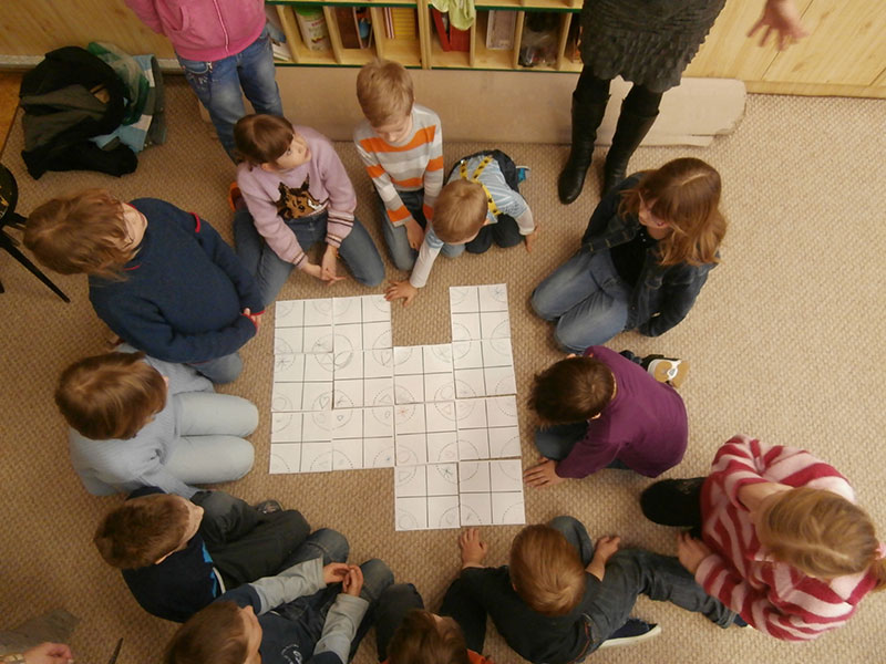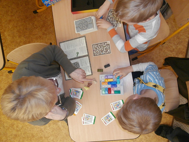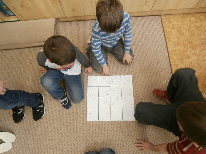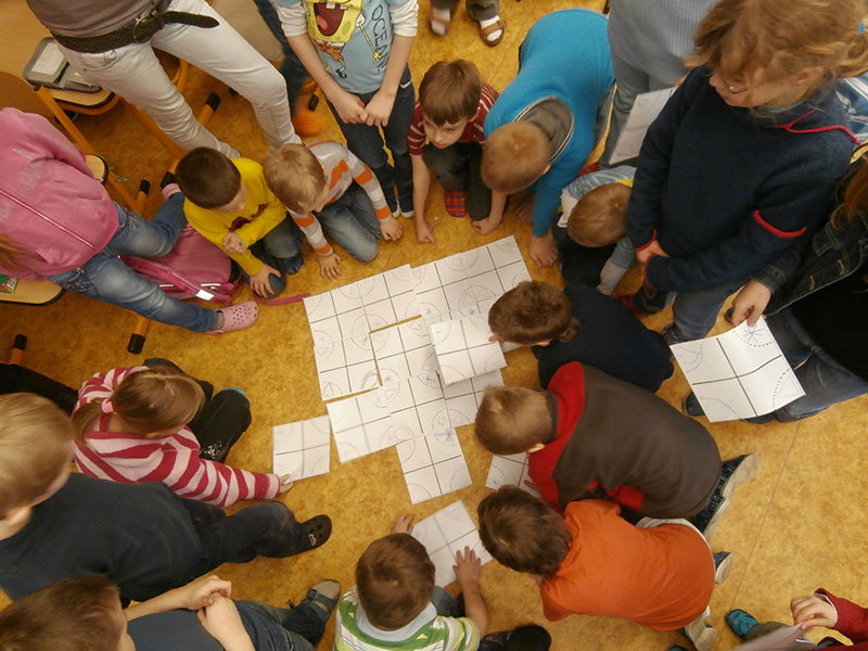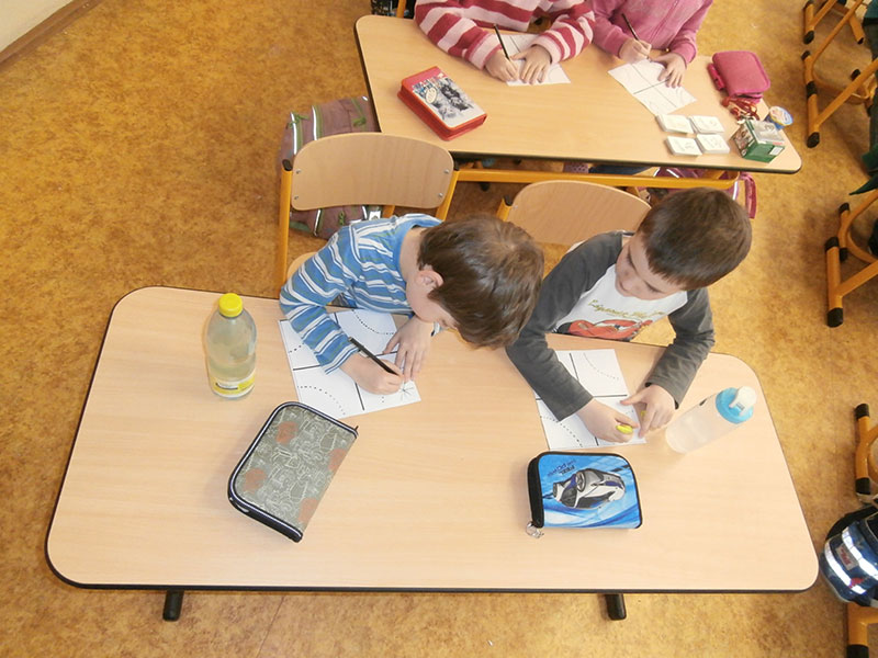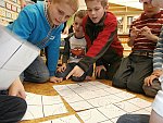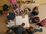 V pátek jsme si zase hráli, tentokrát s deskovými hrami. Jenže než jsme se do nich mohli pustit, pokusili jsme se sestavit velký obrazec z obrazců menších, které si vytvořil každý z nás.