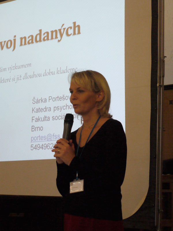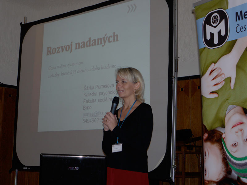 Konferenci Mensa pro rozvoj nadání zahájila Šárka Portešová z Institutu výzkumu dětí, mládeže a rodiny při brněnské Masarykově univerzitě. Mluvila především o tom, jak rozpoznat nadané dítě, zvláště když se jedná o dítě s takzvanou dvojí výjimečností, které je kromě mimořádného nadání zatíženo různými poruchami učení. Přes tyto poruchy pak učitelé často nevidí, že dítě v něčem velmi vyniká, a tento jeho talent nerozvíjejí.