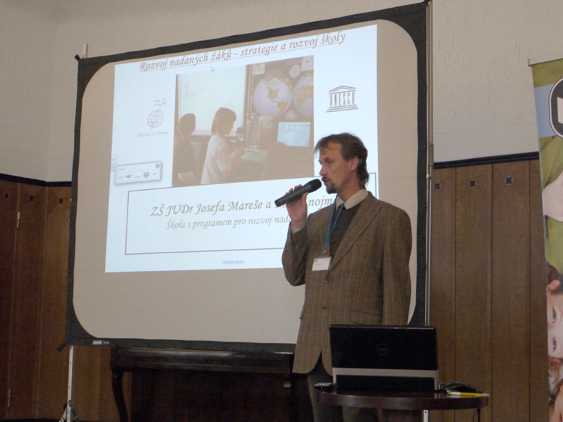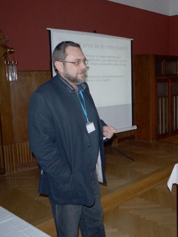 Jiří Rozehnal z 8. ZŠ Frýdek-Místek mluvil v závěrečné přednášce nejen o tom, jak prakticky „rozjet“ třídu pro nadané děti, ale shrnul také důvody, proč o to vůbec usilovat: „O děti s různými handicapy a znevýhodněními už se umíme postarat, ale u nadaných dětí převládá názor, že to nepotřebují. Proč pomáhat někomu, komu již bylo dáno? Jistě, je to legitimní názor, ale já jej nezastávám. Nadané děti si podporu zaslouží, a když se jejich potenciál podaří podchytit a rozvinout, jednou to společnosti bohatě vrátí,“ řekl Jiří Rozehnal.