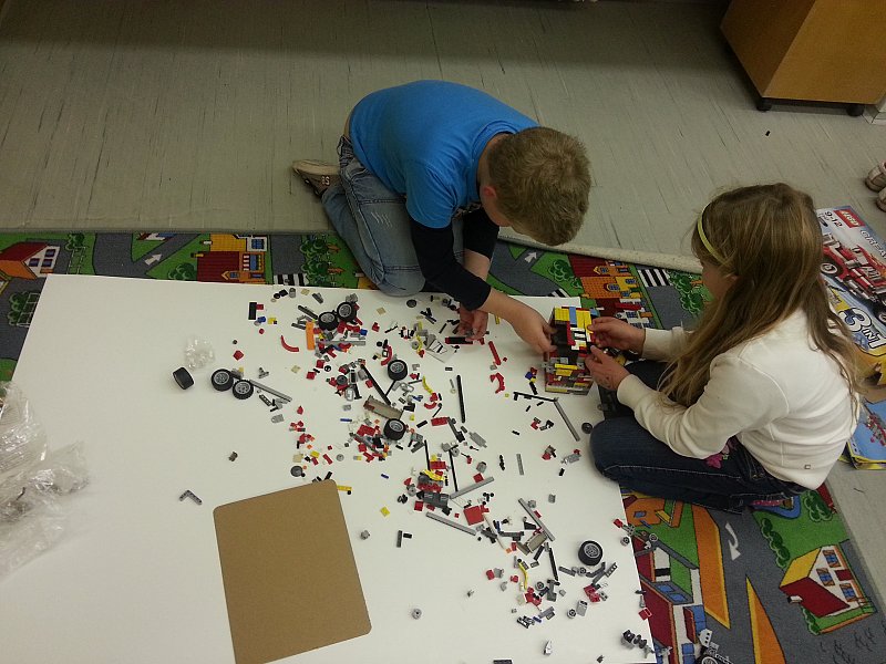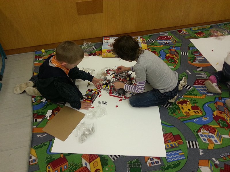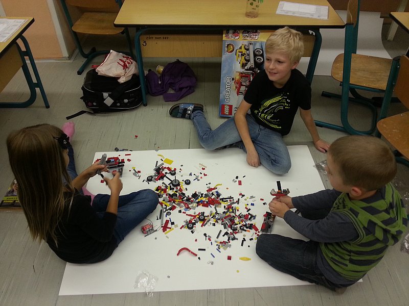 Úterní odpoledne děti strávily hraním si na konstruktéry automobilů a stavěním věže z lega. Aby to nebylo tak jednoduché, podmínkou bylo využít co nejvíce součástek. První soutěž vyhrál automobil té skupinky žáčků, kteří splnili úkol a to velmi originálním způsobem. Zaplnili totiž kostkami lega kufr auta. Bohužel těžký náklad znemožnil vítězství v další soutěži a dal tak šanci svým soupeřům. Tentokrát vyhrálo to vozidlo, které dokázalo ujet nejdelší dráhu a předjet ostatní soutěžící.