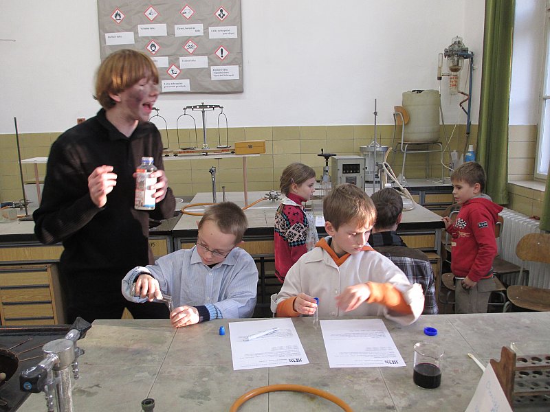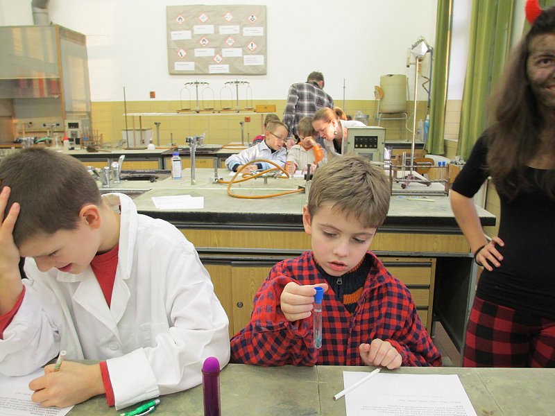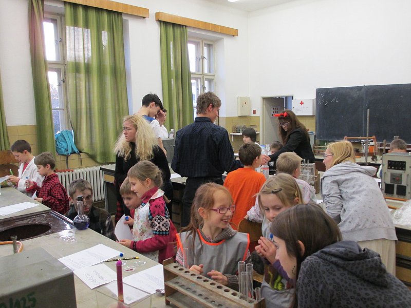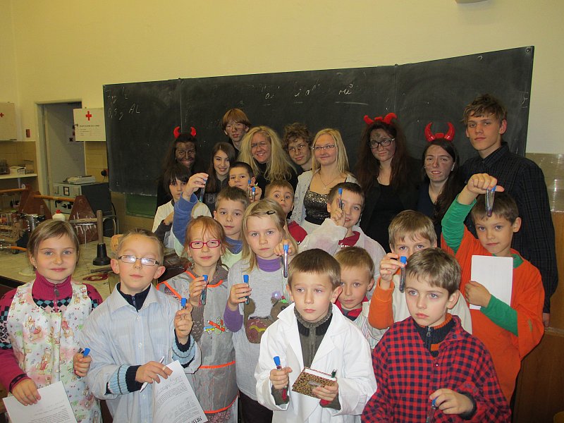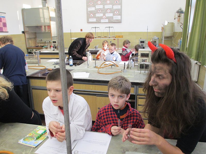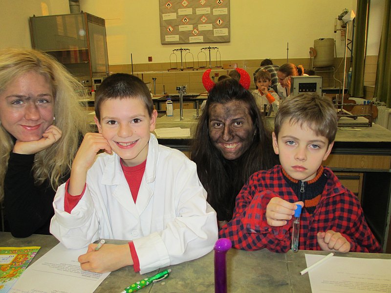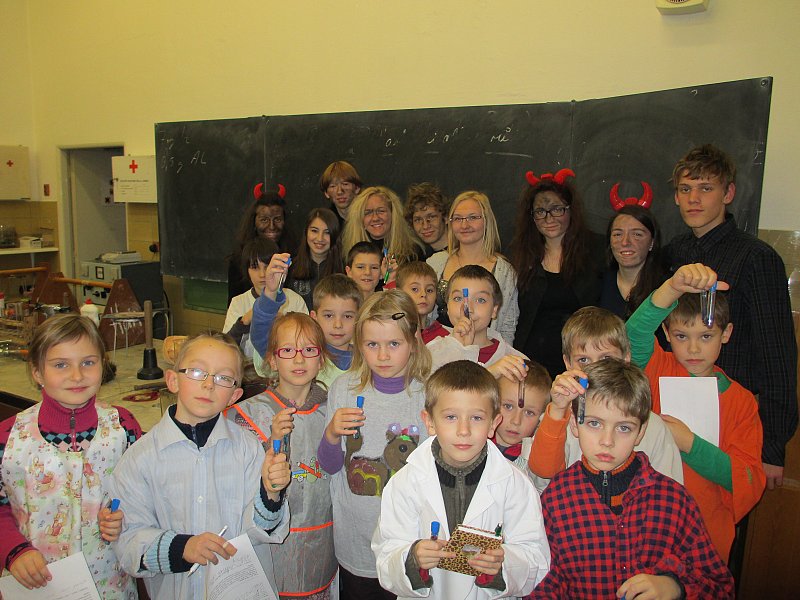 Akci pořádá 1. skupina KND Opava ve spolupráci se studenty Mendelova gymnázia v Opavě pod vedením p. Mgr. Hanzlíkové.Studenti - tedy čerti, Mikuláš a andělé - předvedli program plný zajímavých pokusů. V další části byly děti klubu VIP hosté laboratoře, kde si vyráběly chemickou zahrádku a sloní pastu. Postup byl připraven na pracovním listě. A protože jim čerti v chemickém kouzlení pomáhali, všichni byli úspěšní. Na závěr jim Mikuláš nadělil nadílku. Čeho si ceníme nejvíce? Nádherných vztahů, které se mezi dětmi a studenty vytvořily. Děkujeme p. Mgr. Hanzlíkové a těšíme se na příští setkání s chemií!