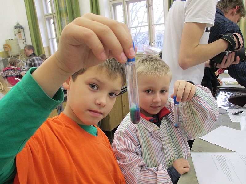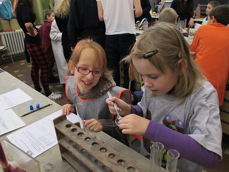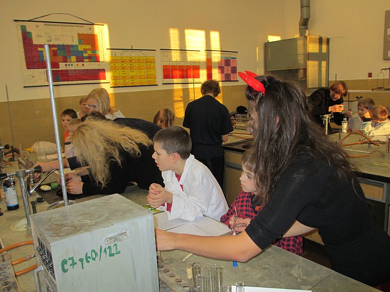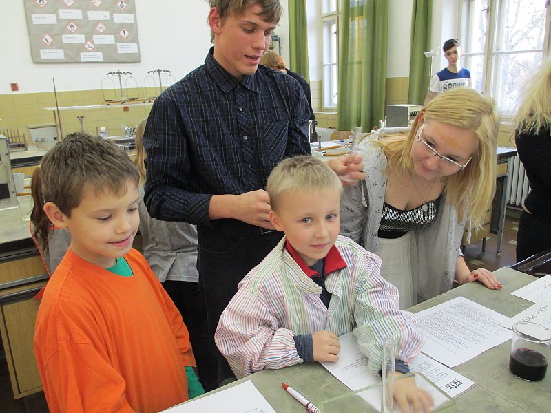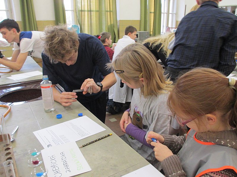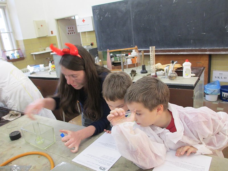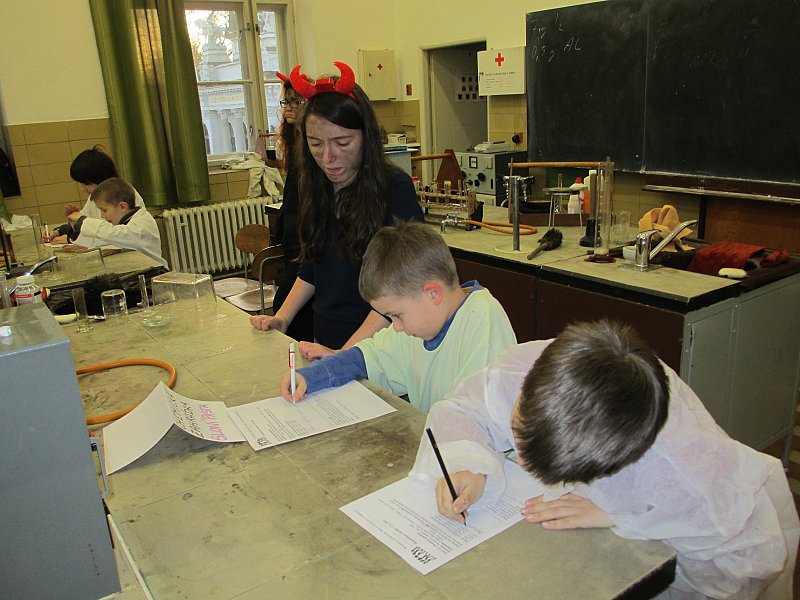 Akci pořádá 1. skupina KND Opava ve spolupráci se studenty Mendelova gymnázia v Opavě pod vedením p. Mgr. Hanzlíkové.Studenti - tedy čerti, Mikuláš a andělé - předvedli program plný zajímavých pokusů. V další části byly děti klubu VIP hosté laboratoře, kde si vyráběly chemickou zahrádku a sloní pastu. Postup byl připraven na pracovním listě. A protože jim čerti v chemickém kouzlení pomáhali, všichni byli úspěšní. Na závěr jim Mikuláš nadělil nadílku. Čeho si ceníme nejvíce? Nádherných vztahů, které se mezi dětmi a studenty vytvořily. Děkujeme p. Mgr. Hanzlíkové a těšíme se na příští setkání s chemií!