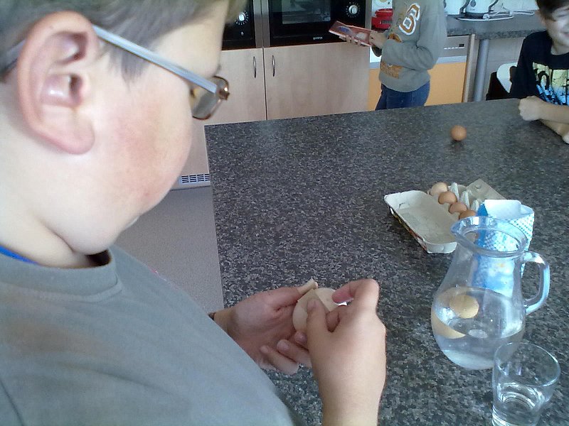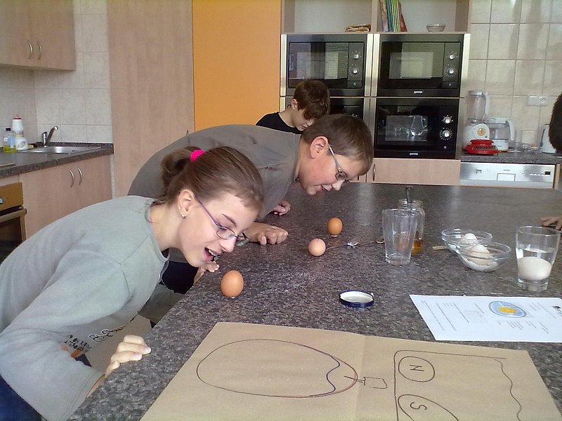 Víte, že když ponoříte vejce na 24 hodin do octa, tak úplně zmizí skořápka? Na povrchu zůstane jen blána a vejce bude krásně pružné. Když toto pružné vejce bez skořápky ponoříte do vody, tak už po hodině bude vidět, že se zvětšilo. Vysvětlení je jednoduché, blána se chová jako membrána a díky osmóze prostupuje voda dovnitř, protože uvnitř vejce je roztok s vyšší koncentrací. A znáte trik, jak postavit vejce na špičku? Jak rozeznat syrové vejce od vařeného, když jsou obě v celku a na pohled jsou úplně stejná? Jak přimět vejce, aby se ve vodě vznášelo, ale aby přitom neplavalo na hladině? A jak dostat vařené vejce do sklenice pomocí podtlaku?