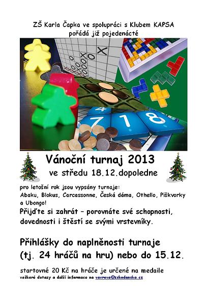 ZŠ Karla Čapka ve spolupráci s Klubem KAPSA pořádá již pojedenácté Vánoční turnaj 2013 ve středu 18. prosince 2013 dopoledne.