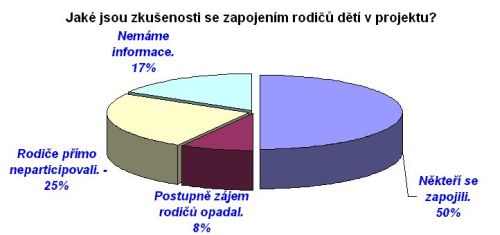 - zapojit rodiče dětí do projektu, zjistit jejich míru angažovanosti v aktivitách