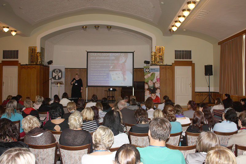 PhDr. Jitka Fořtíková, Ph.D. ve své přednášce „Jak rozvíjet intelektové schopnosti dětí“ (viz Prezentace ke stažení) představila dva projekty pro předškolní děti – Mensa a NTC systém učení a Fort IQ – které pro práci s dětmi přinášejí velké množství podnětů, potřebných k intelektuálnímu rozvoji. Její neurologická argumentace je alarmující a přesvědčivá: do 6-7 let věku je mozek ze 70 % hotov; u dětí z bilingvních rodin zaznamenala v tomto věku vyšší hladinu intelektu proti ostatním a přičítá to právě mnoha podnětům, daným dvojjazyčností – dítě zpracovává nejen vjemy sluchové, ale i gesta a mimiku (také v MŠ s rodilým mluvčím) a rozlišuje, jak má hovořit s mámou, tátou, paní učitelkou či rodilým mluvčím; zajímavý byl příklad uvedený dalším lektorem, kdy 3letá holčička z česko-slovenského prostředí tatínkovo pojmenování květiny (pupava) spontánně „tlumočila“ mamince (pampeliška).