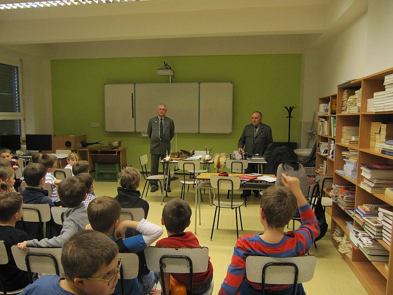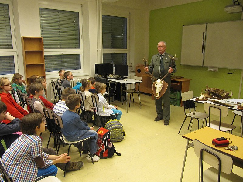 Děti se dozvěděly o práci myslivců, o životě zvěře, měly možnost vidět zblízka některé ptáky, myslivecké trofeje, zajímaly se o ochranu zvěře před pytláky.