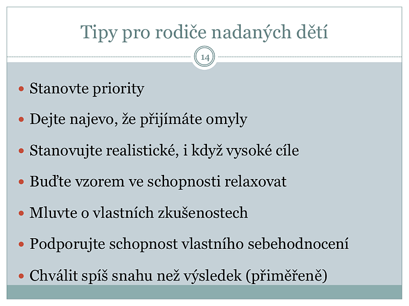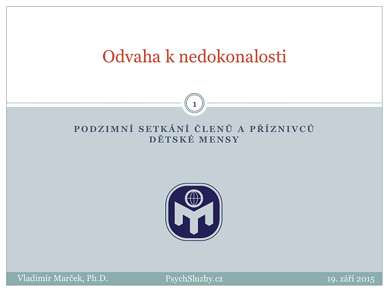 S laskavým svolením autora přetiskujeme prezentaci na téma „Odvaha k nedokonalosti“, která byla součástí přednášky dr. Marčeka během podzimního setkání členů a příznivců Dětské Mensy v září 2015. Přednáška se zaměřovala na perfekcionismus a sklony k němu, zvláště pak u nadaných dětí.