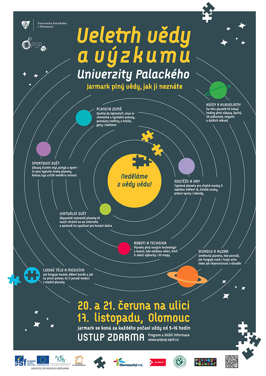 Univerzita Palackého v Olomouci zve všechny zájemce o nejrůznější oblasti vědy na již tradiční Veletrh vědy a výzkumu, který se koná v pátek 20. 6. 2014 a v sobotu 21. 6. 2014 od 9 do 16 hodin.