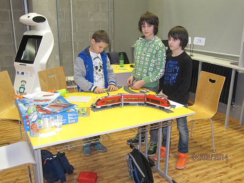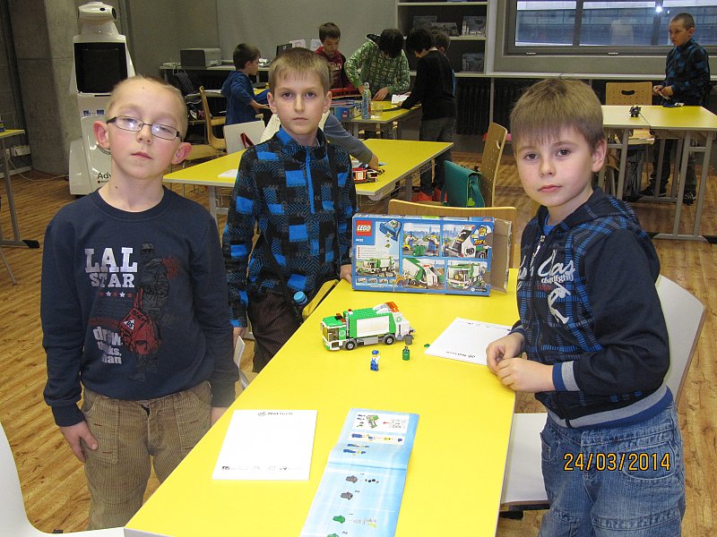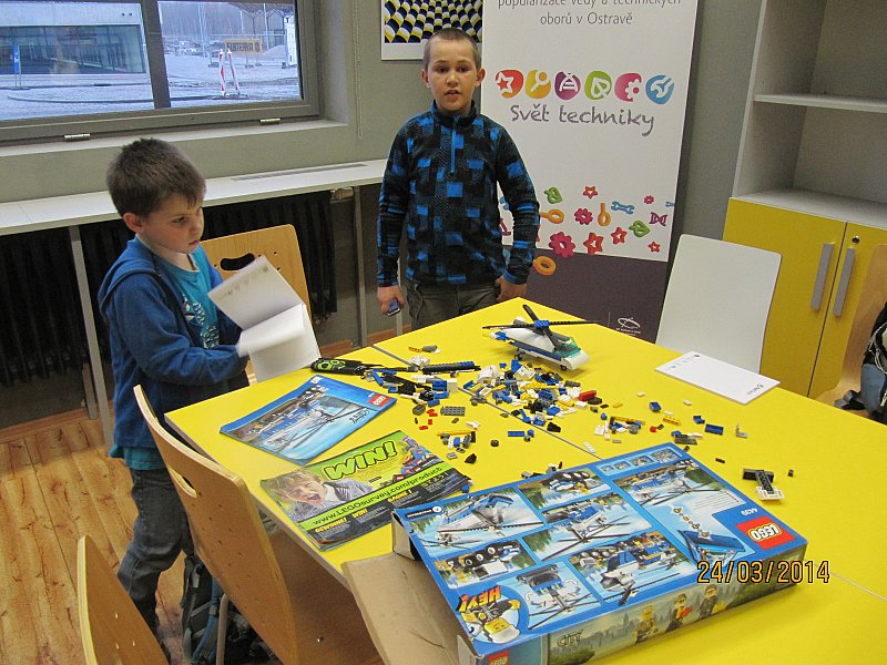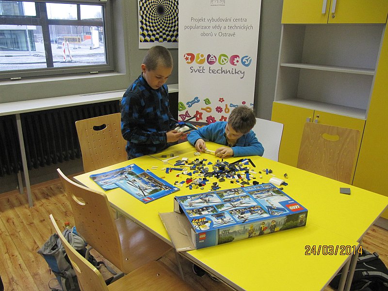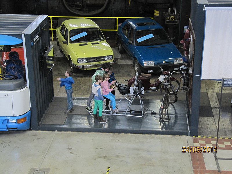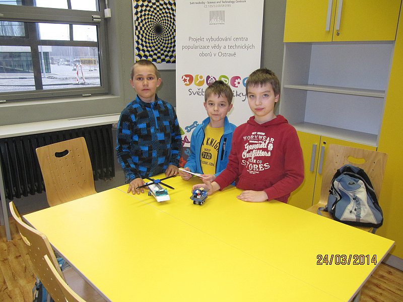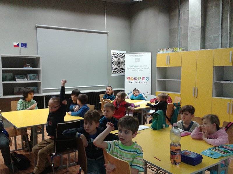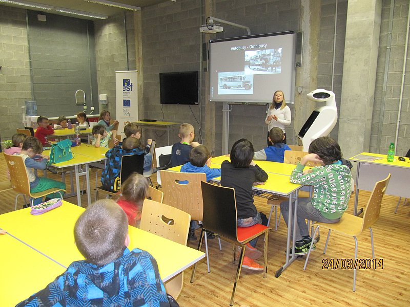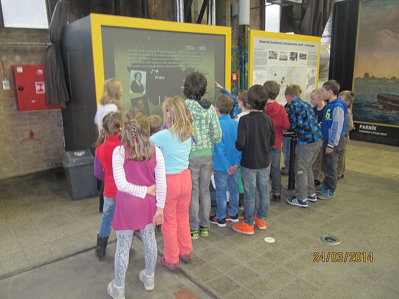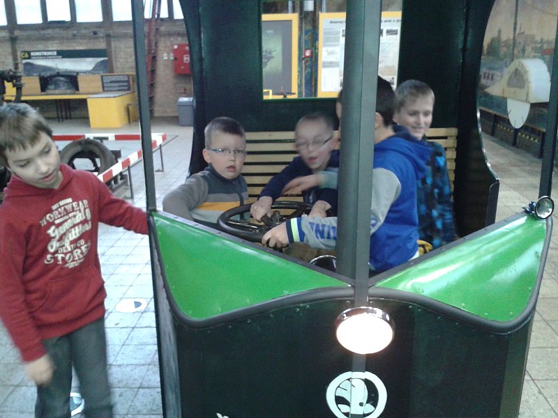 V úvodní besedě u interaktivní tabule se děti dověděly něco z historie vývoje dopravních prostředků. Poté si v expozici malého technického muzea na U6 mohly vyzkoušet „ovládání“ parovozu, parní lokomotivy, na interaktivním panelu se poučily o vývoji železnic u nás. Poté si na trenažérech vyzkoušely řídit motorku, auto, autobus, letadlo, periskop na ponorce, radiovou komunikaci z vesmírné stanice apod. Po vydatné svačince si v učebně vytvářely podle návodů dopravní prostředky ze stavebnice LEGO, někdo dal přednost jejich zachycení v kresbě. Když nastal čas k návratu domů, nikomu se nechtělo.
