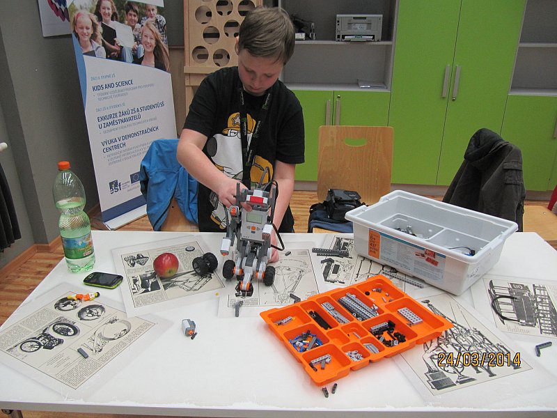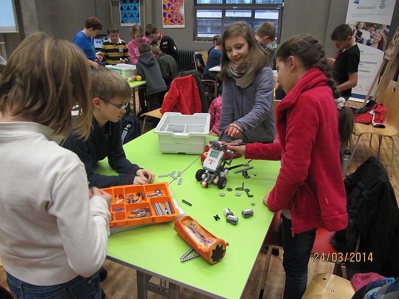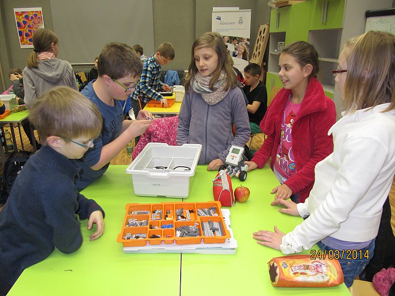 V úvodní části schůzky se děti v besedě u interaktivní tabule seznámily s historií vývoje robotiky, jejím obsahem i mezioborovým přesahem. Na tabletech se naučily pracovat metodou BYOD. Ve skupinách pak stavěly své vlastní roboty ze stavebnice LEGO MINDSTORMS. Po vydatné svačině začalo oživování robotů, kteří reagovali na světelné, zvukové nebo dotykové podněty. Když nastal čas odjezdu, byly děti překvapené a nikomu se nechtělo od robotů odejít. Tak zase příště!