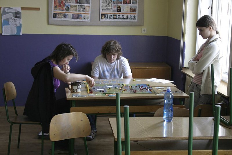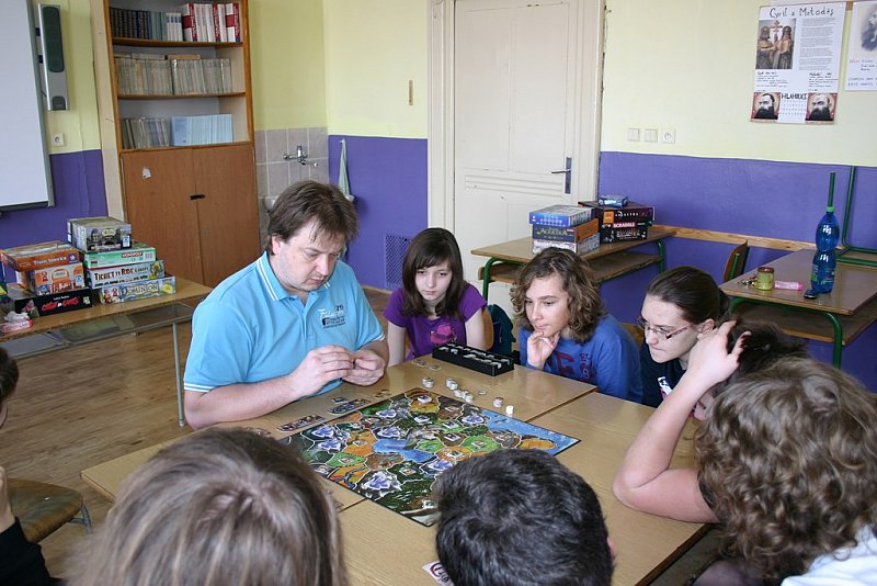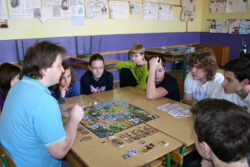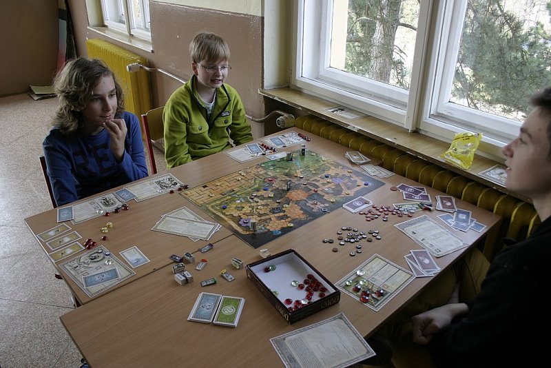 V sobotu 29.3. 2014 na našem gymnáziu proběhlo od 9.30 do 14.30 setkání nadšenců deskových her. Počasí sice lákalo ven, ale my jsme se přesto sešli v docela hojném počtu. Přišlo celkem 16 hráčů různého věku, nejmladší účastnici bylo 10 let, nejstarší hráč už prožil 40 jar a podzimů.