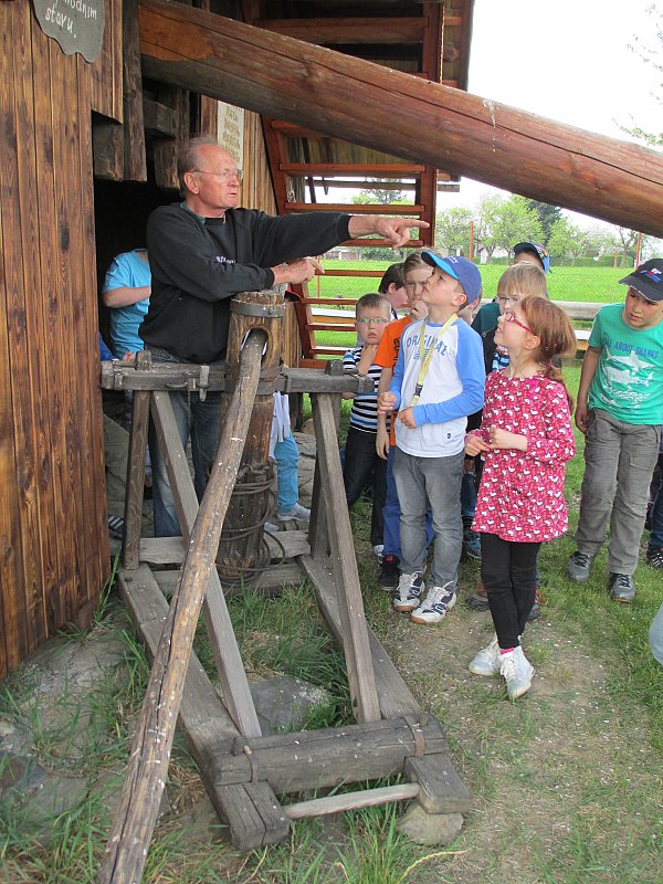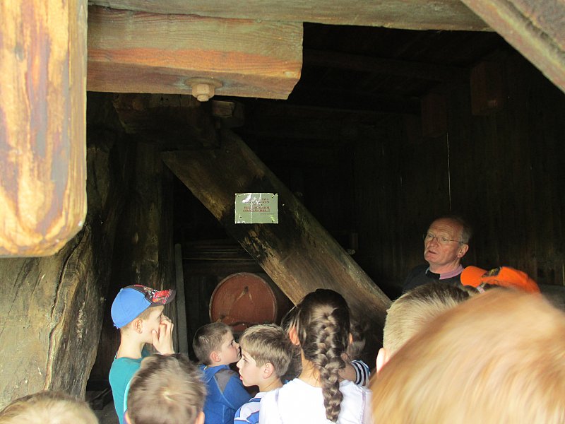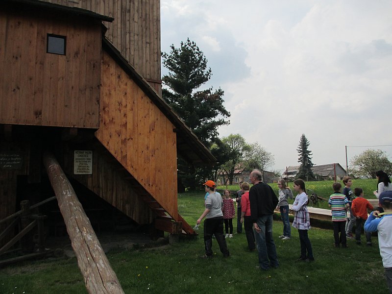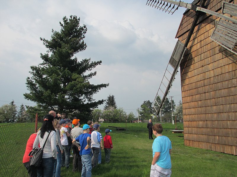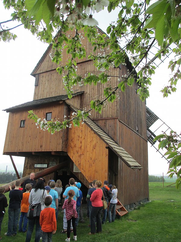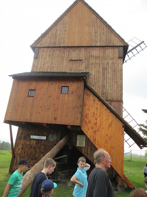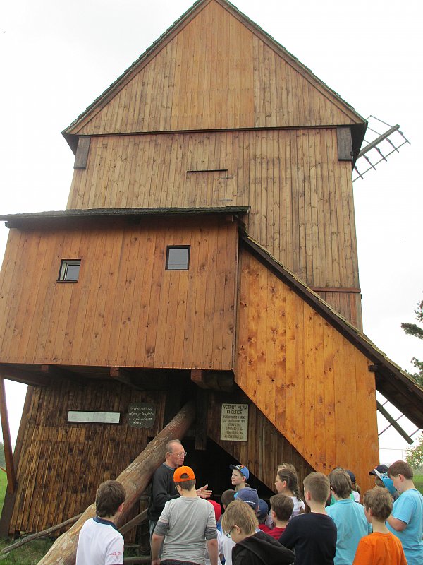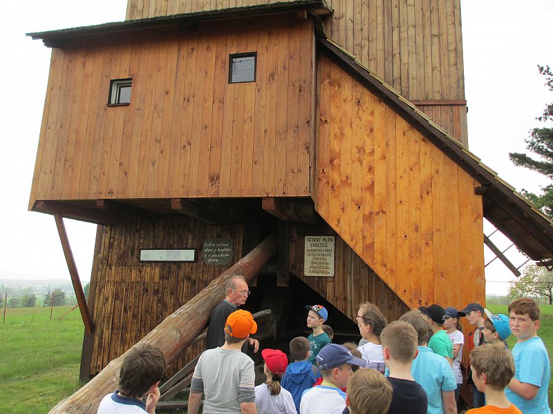 Na zpáteční cestě jsme využili blízkosti větrného mlýna v Cholticích. Pan Ramfeld se dětem trpělivě věnoval, vše jim objasnil a přenesl na ně svůj zápal pro obnovu a údržbu památek.