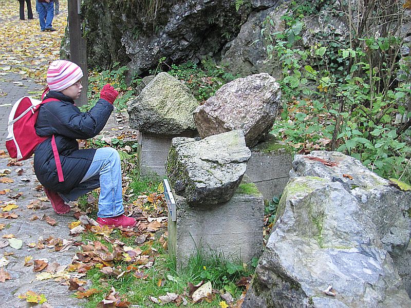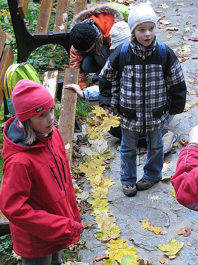 Tento pátek jsme prozkoumali Kateřinskou jeskyni. Již ve 12:45 hod jsem odjížděli autobusem ze školy. Za hodinu nás přivítala severní brána Moravského krasu Skalní mlýn. Podzimní slunce nám zpříjemňovalo malou soutěž-vytváření řetězu ze žlutých listů.