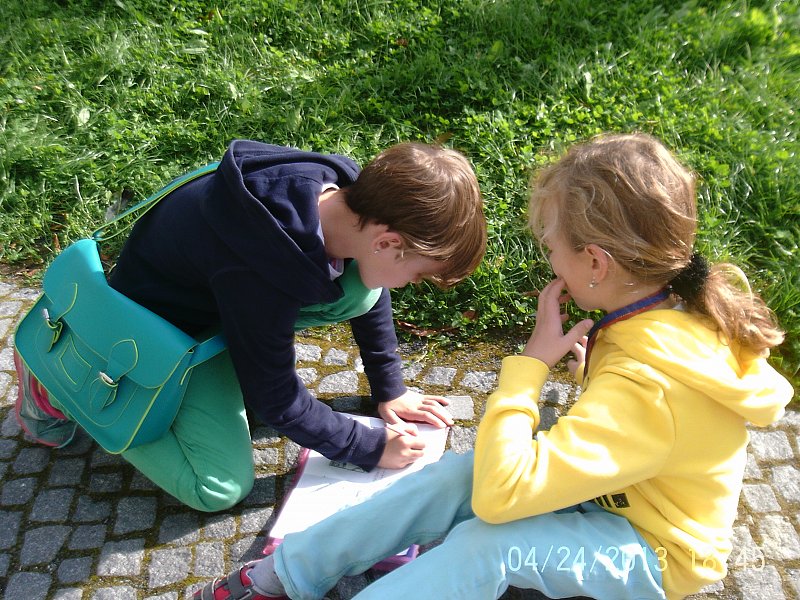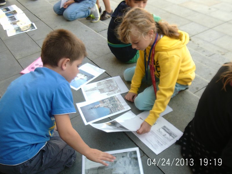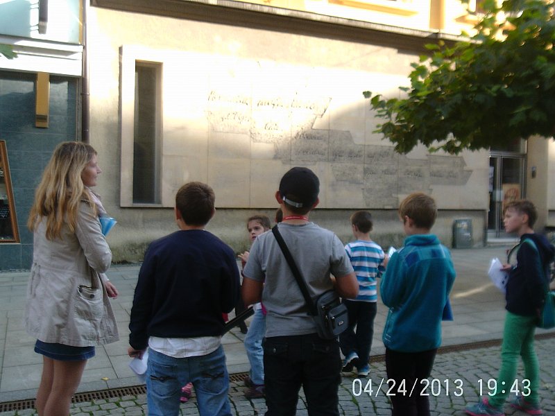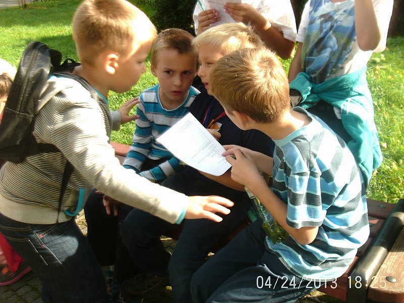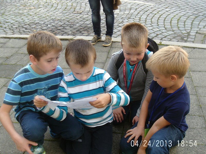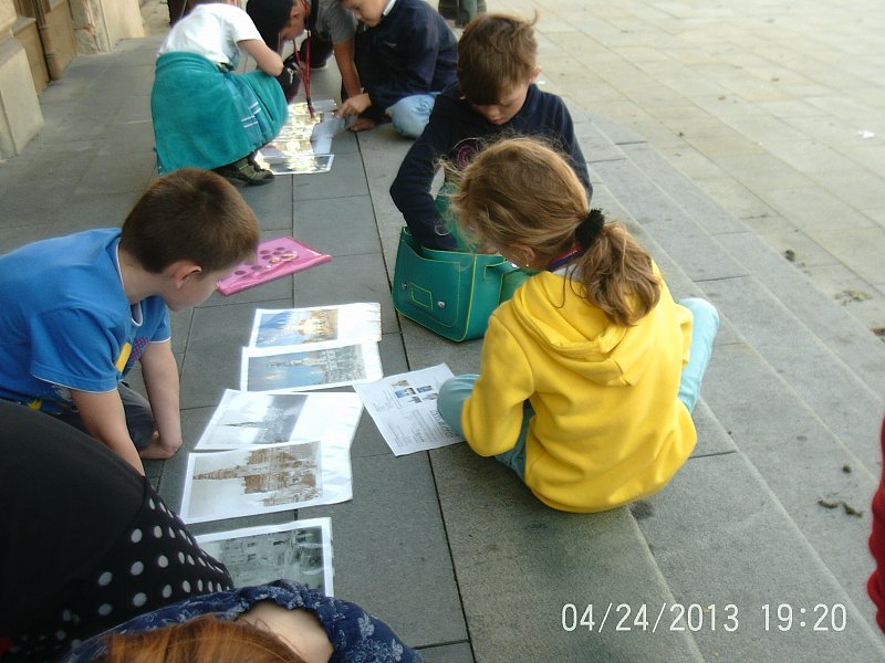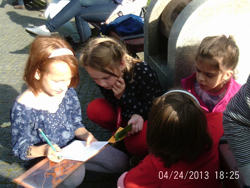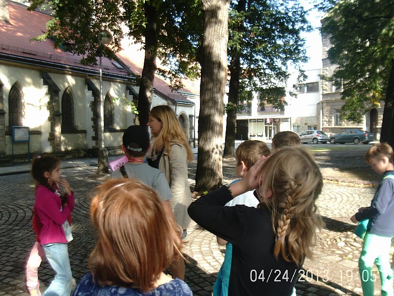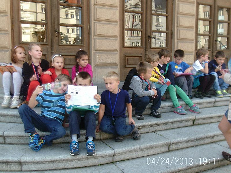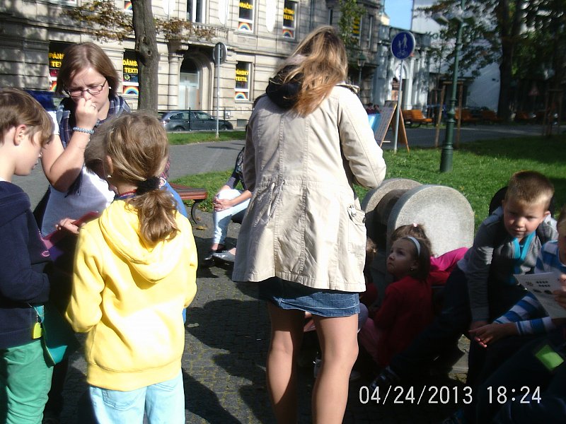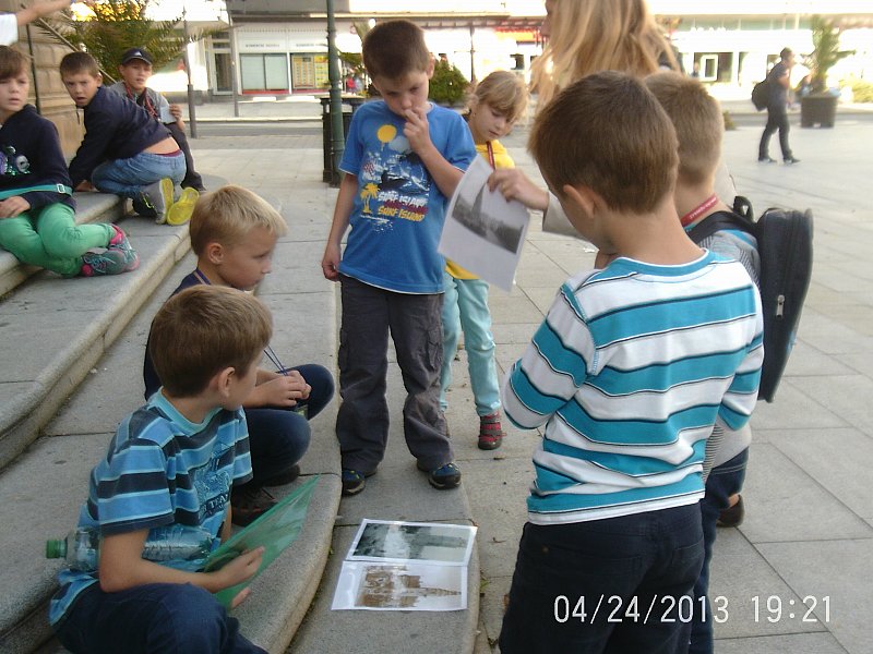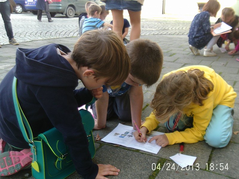 V průběhu procházky děti pracovaly ve skupinkách a dohledávaly údaje do pracovního listu. Dozvěděly se tak mnoho nových zajímavostí o historii svého města.