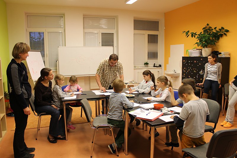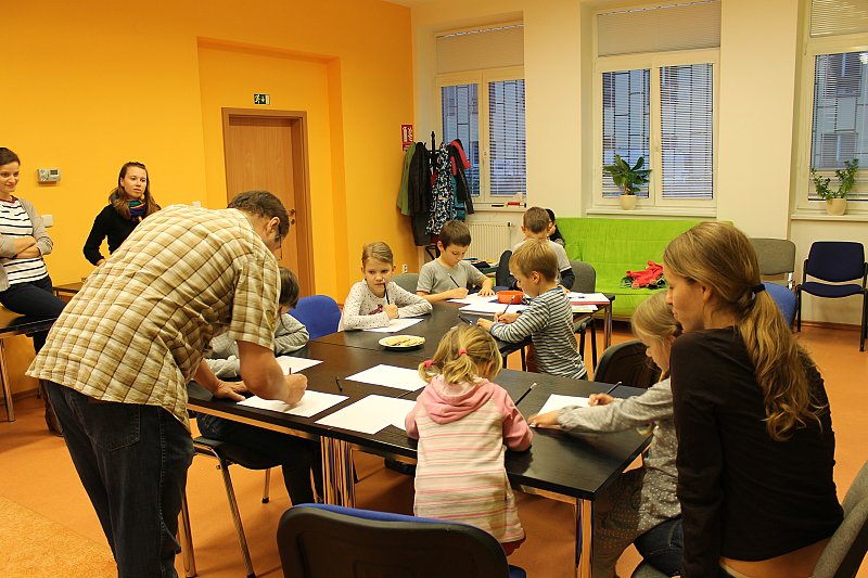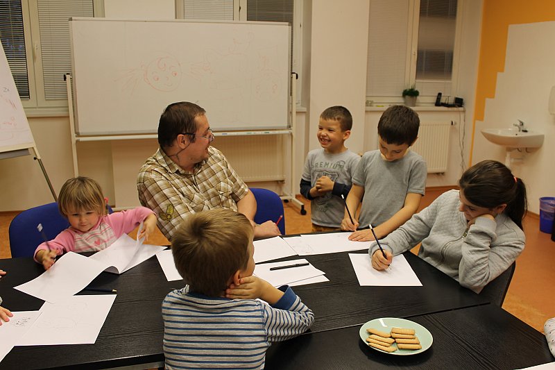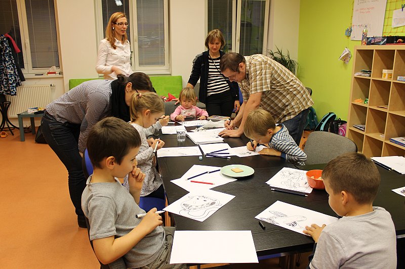 Dozvěděli jsme se něco o tom, jak taková práce na ilustracích probíhá a jaké zásady by ilustrátor měl dodržovat. To vše při aktivní práci všech zúčastněných – kreslili jsme vtip a následně společnými silami vytvořili 7 postav, které si můžete prohlédnout ve fotogalerii. Užili jsme si příjemné odpoledne.