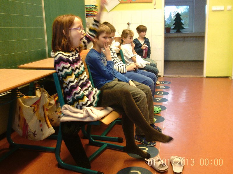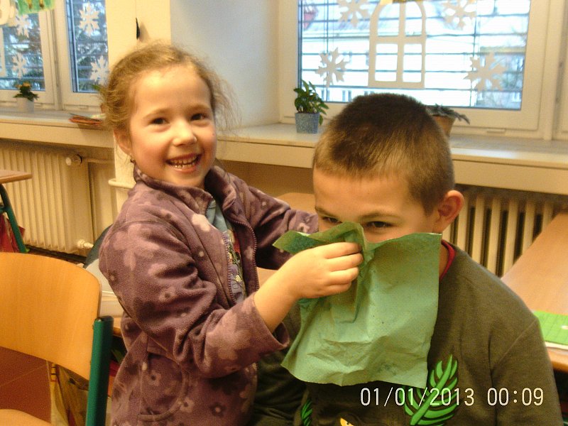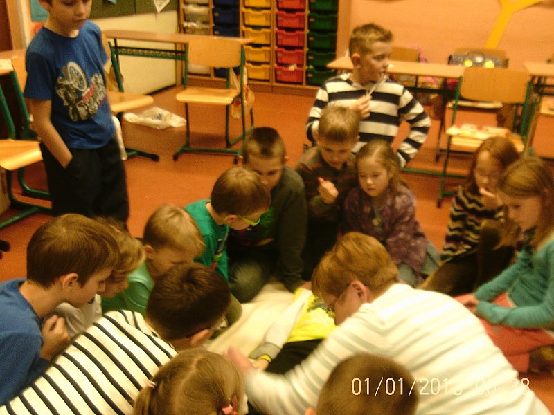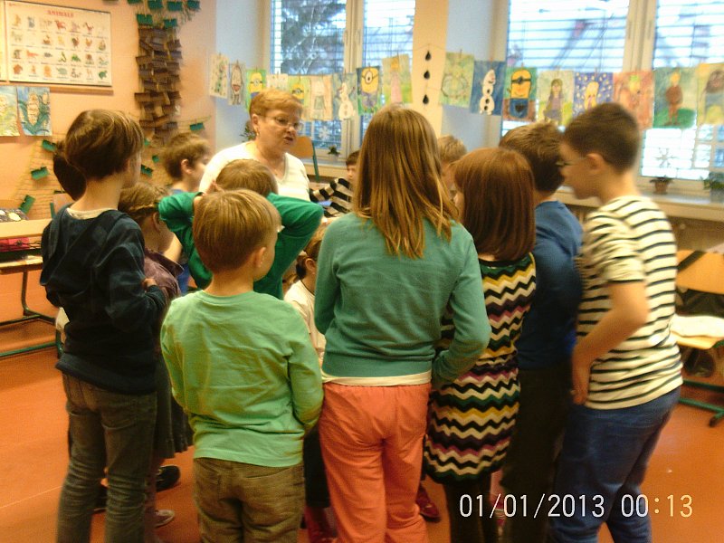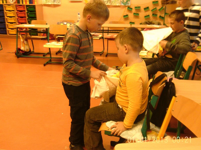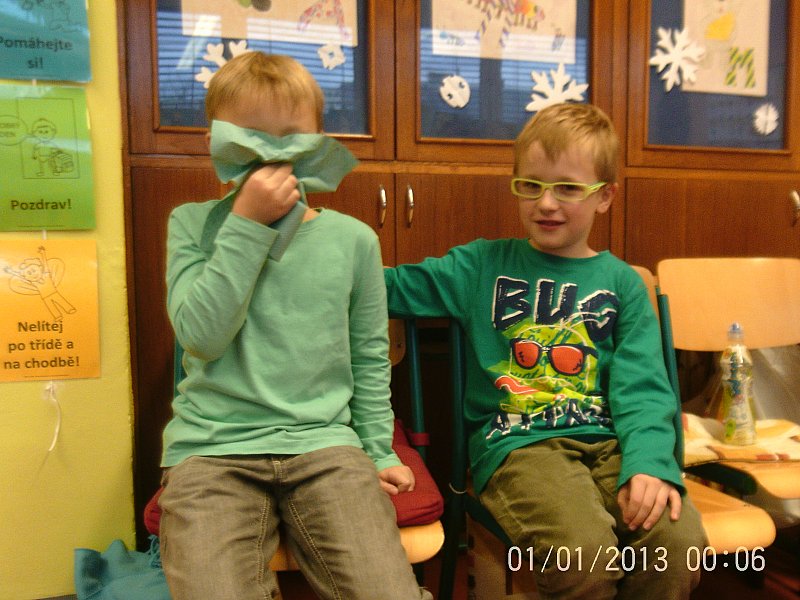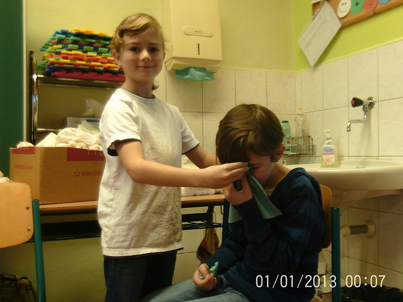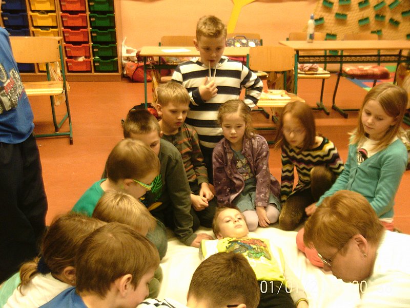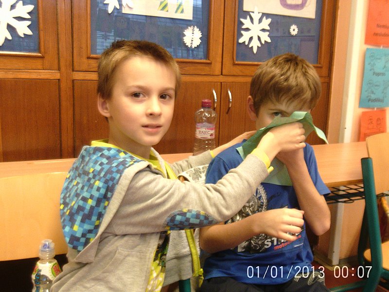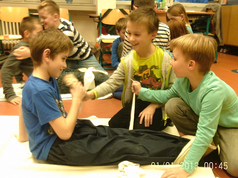 Děti si vyzkoušely spčítat svou dechovou frekvenci, změřit si tep, Na kamarádovi zjistit, zda dýchá, změřit mu tep, ošetřit krvácení z nosu, zafixovat zlomenou horní i dolní končetinu.