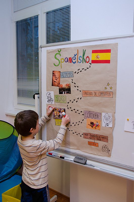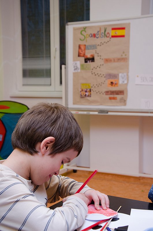 V úterý 10. února proběhlo další setkání Klubu nadaných dětí při Základní škole a mateřské škole Didaktis s.r.o., jež se tentokrát neslo ve španělském stylu. S dětmi jsme se dozvěděly něco o jeskyni Altamira, prošly jsme se spolu s poutníky do Santiaga de Compostela. A protože měsíc únor je ve Španělsku měsícem karnevalů, vyrobily jsme si krásné třpytivé masky a ochutnaly typický španělský ořechový dort a dětskou sangriu.