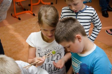 V úterý 15. září se uskutečnilo první setkání Klubu nadaných dětí v tomto školním roce. Tentokrát jsme se společně vydali na cestu po Číně. Dozvěděli jsme se něco o čínské kultuře. Zjistili jsme, jak se vyrábí hedvábí. Uvařili jsme si kvetoucí čaj a nakonec jsme si vyzkoušeli jíst hůlkami. Zkrátka jsme prožili báječné odpoledne v čínském stylu.