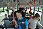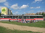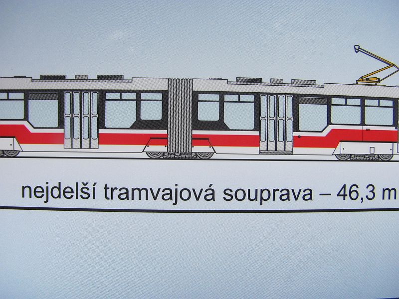 Dopravní podnik vlastní 11 souprav. Měří 46,3 m, obsaditelnost až 320 cestujících. Také jsme si vybrali nejdelší linku (č.1, 19,2 km a 37 zastávek). Na konečné stanici jsme se vyfotili a na zpáteční cestě jsme zjišťovali po kom je zastávka Ečerova pojmenovaná. Znáte odpověď?