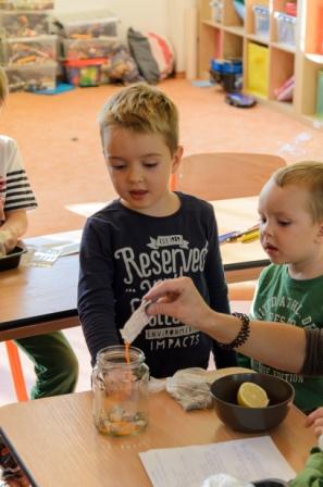 V úterý 29. září se uskutečnilo další setkání Klubu nadaných dětí. Tentokrát jsme se věnovali vesmíru. Dozvěděli jsme se, co to byl Velký třesk, jaké planety tvoří sluneční soustavu. Zjistili jsme, která z planet je největší, nejmenší, nejstudenější… Nakonec jsme si zahráli na vědeckou konferenci, na které jsme zkoumali povrch jednotlivých planet.
