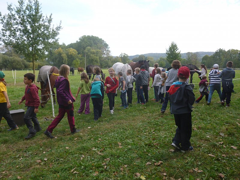 Pak jsme šli nakrmit velké koně. |