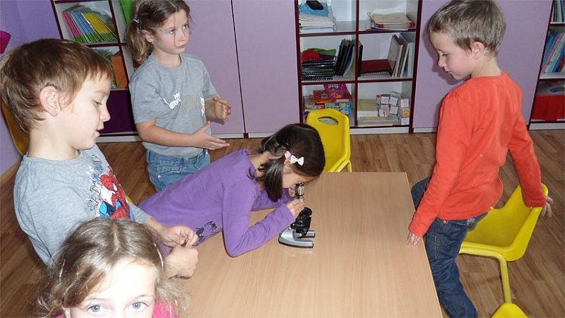 - Současně si vyrobíme vzorky pod mikroskop, které si pak pomocí digitálního mikroskopu promítneme na interaktivní tabuli.