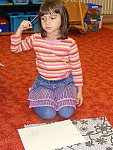 Veršovanou pohádku jsme si obyčejnou tužkou „zapsali“ za pomoci rodičů do myšlenkové mapy, ze které jsme ji následně předčítali ostatním. Děti pak „zapsaly“ svůj vlastní vymyšlený příběh a „četly“ jej ostatním.