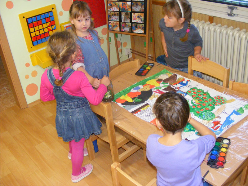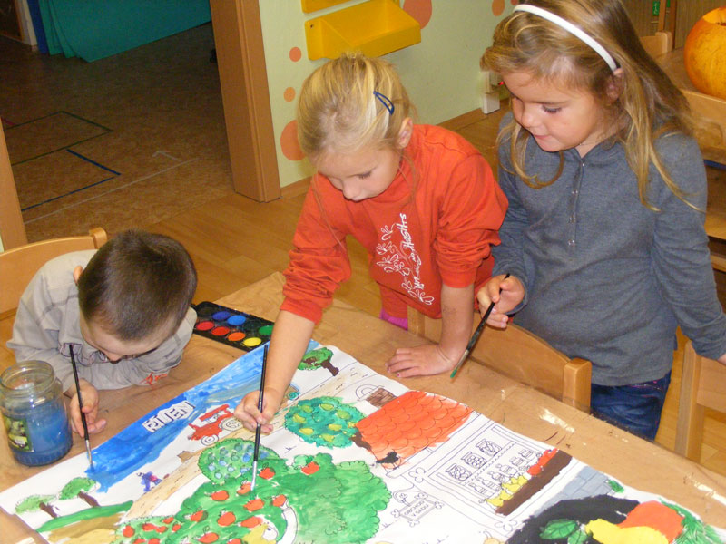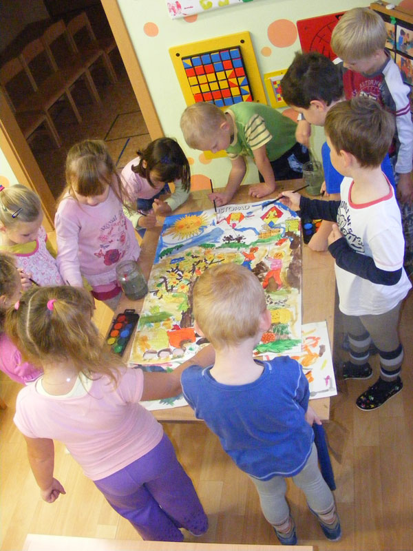 Učíme se tím vnímat změnu měsíců v průběhu roku, jejich název a také charakteristické činnosti typické pro daný měsíc. Dále procvičujeme spolupráci, kooperaci, ohleduplnost, ale také zacházení s vodovými barvami, držení štětce a samostatnou přípravu na tuto činnost i pozdější úklid.