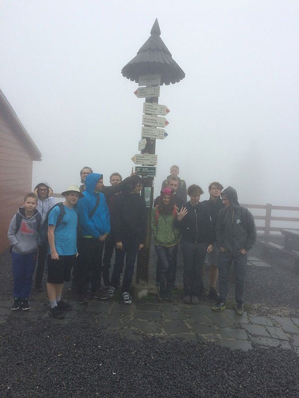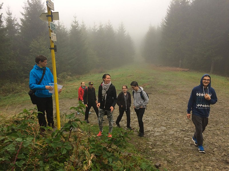 Po obědě na nás čekala šifrovačka. Ven se sice nikomu nechtělo, protože bylo chladno a trochu pršelo, ale když jsme nakonec vyrazili, rychle jsme propadli soutěživosti. Jelikož nás šifry vedly stále do kopce, nezáleželo jen na tom, jak rychle je vyluštíme, ale i na tom, jak rychle půjdeme. Skončili jsme na vrcholu Lysé hory, kde bylo díky restauraci naštěstí teplo. Zde jsme díky zde vyskytujícím se pokémonům zjistili, že převážná většina z nás hraje Pokémon Go.