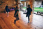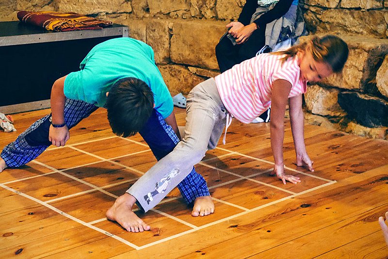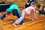 Druhý den ráno po snídani byl ve znamení prověrky naší fyzické i psychické kondice. Účastnili jsme se arénových turnajů v topologii (známé jako hra twister), kohoutích zápasech, skákání přes švihadlo, přetlačování nohama a mnoho jiných. Navíc k fyzické aktivitě jsme si vyzkoušeli i sázení na tyto zápasy. Strategie i výsledky sázení byly ve všech družinkách naprosto rozdílné.