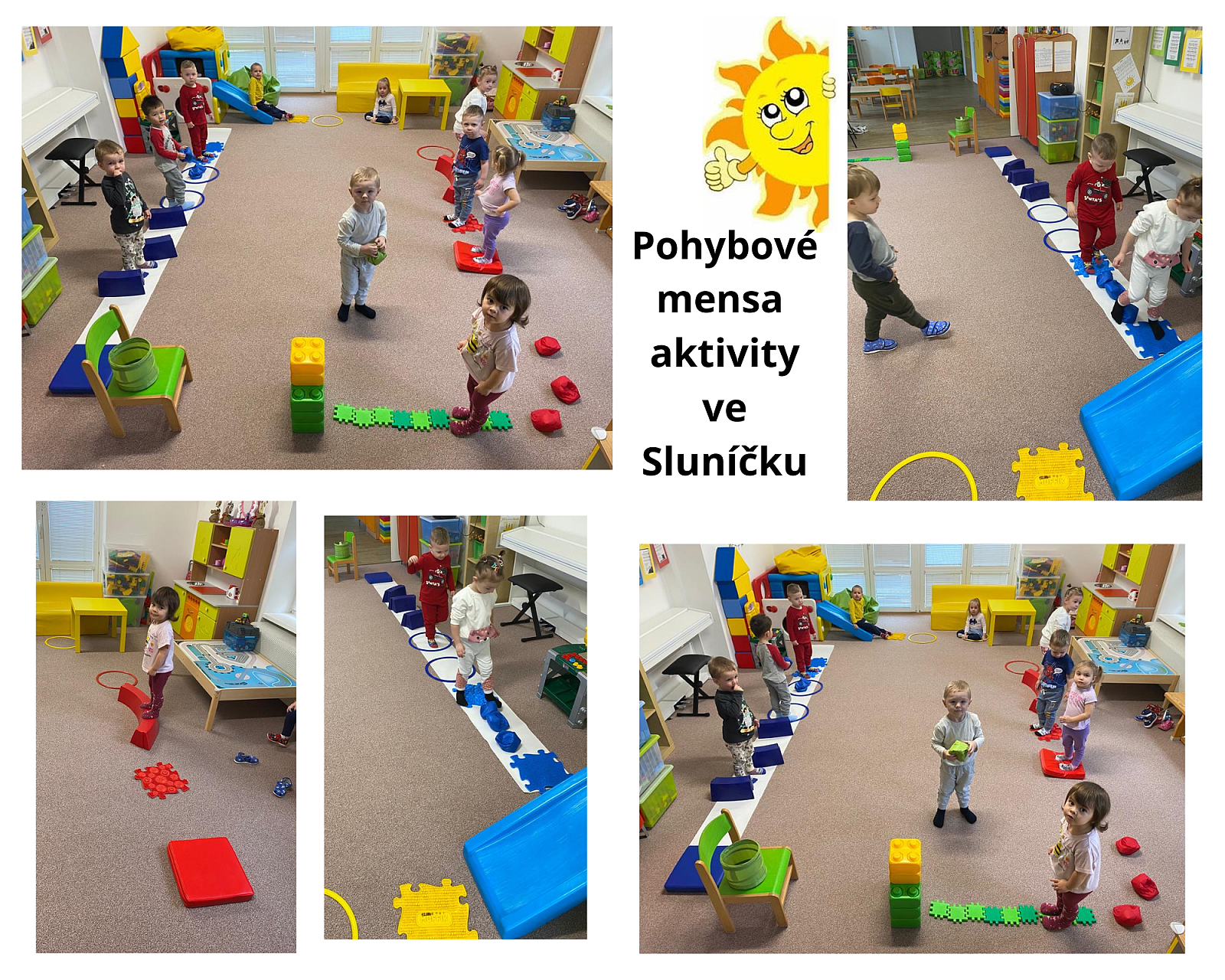 Naše nejmenší děti ve Sluníčku mají velice rády překážkové dráhy s využitím různých pomůcek.