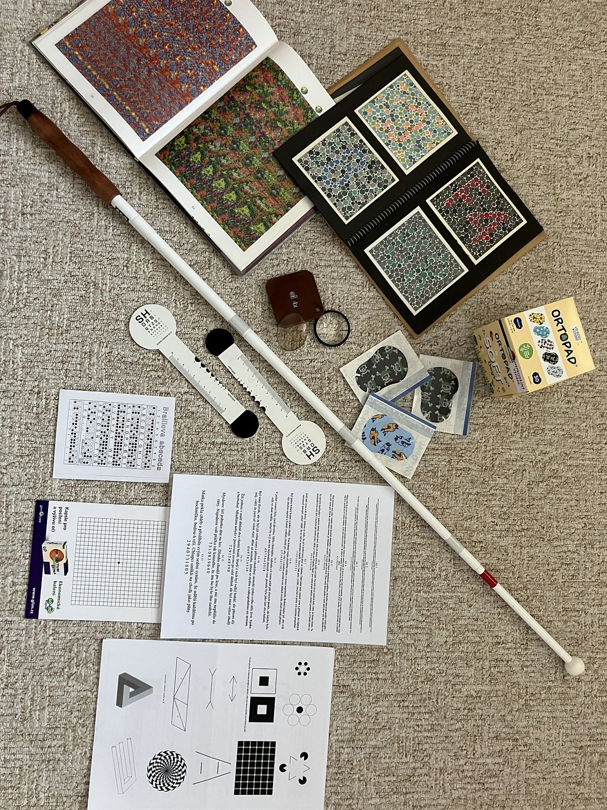 Vyzkoušeli jsme si zrakovou ostrost, barvocit, Amslerovu mřížku, práci se slepeckou holí a další