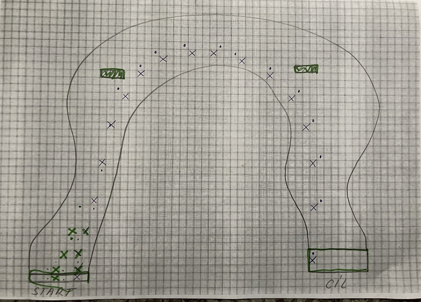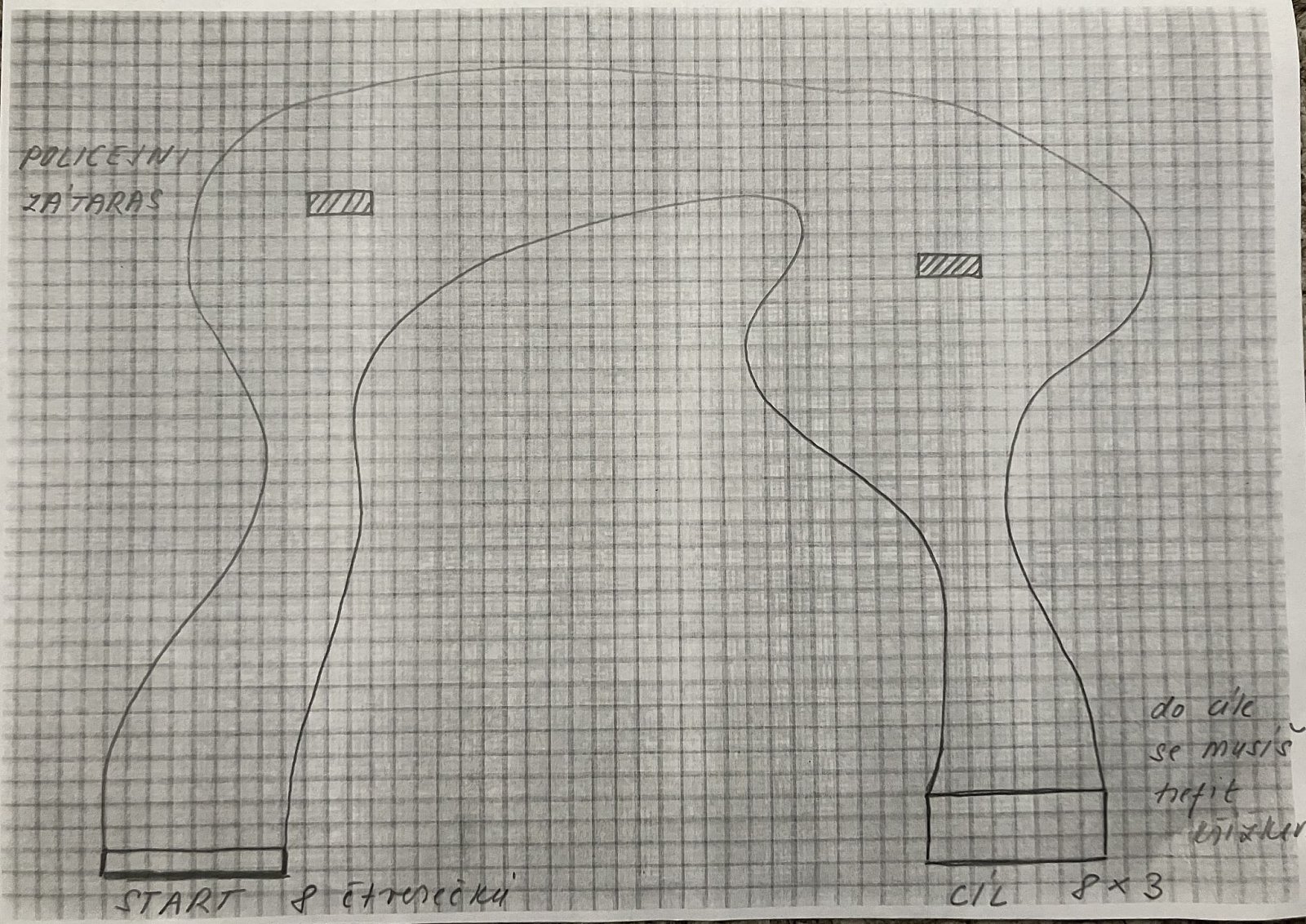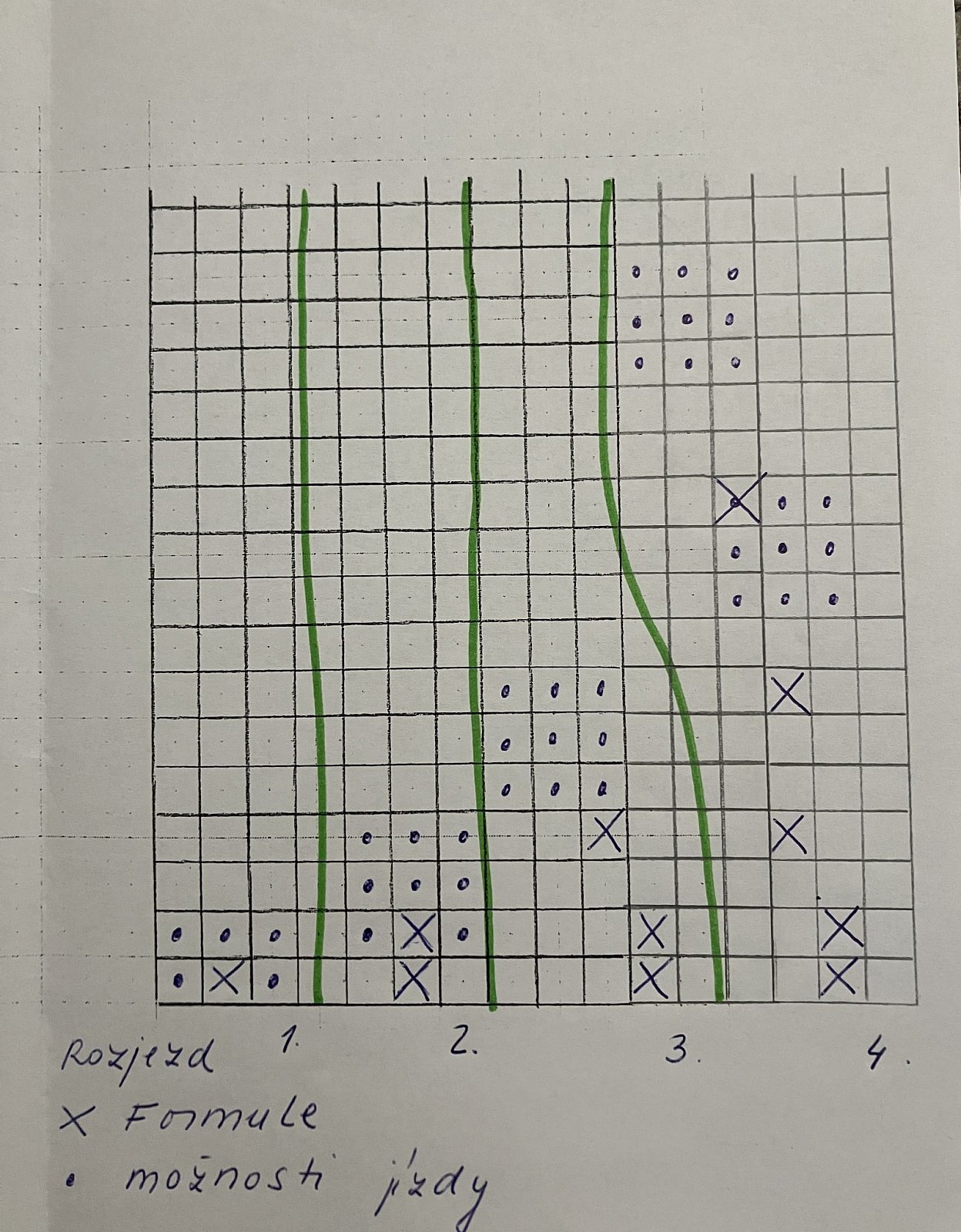 Pokud nabourám (vyjedu mimo trasu), rozjíždím se z místa, kde jsem protnul kraj dráhy (nabourání mě tedy zastaví a ztrácím čas) |