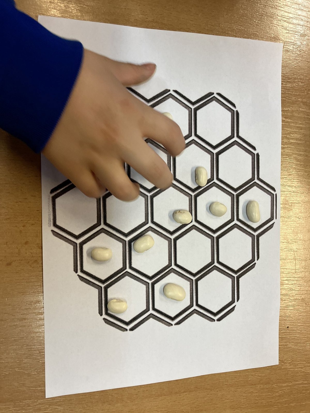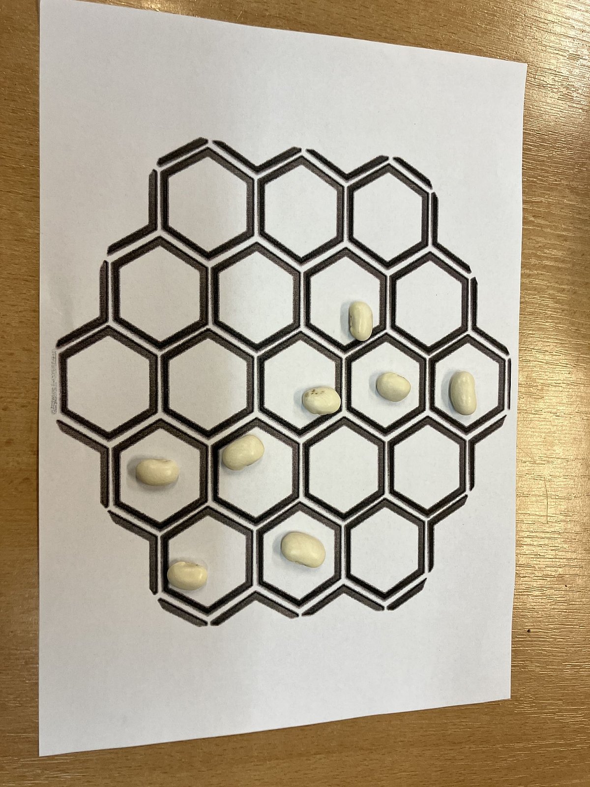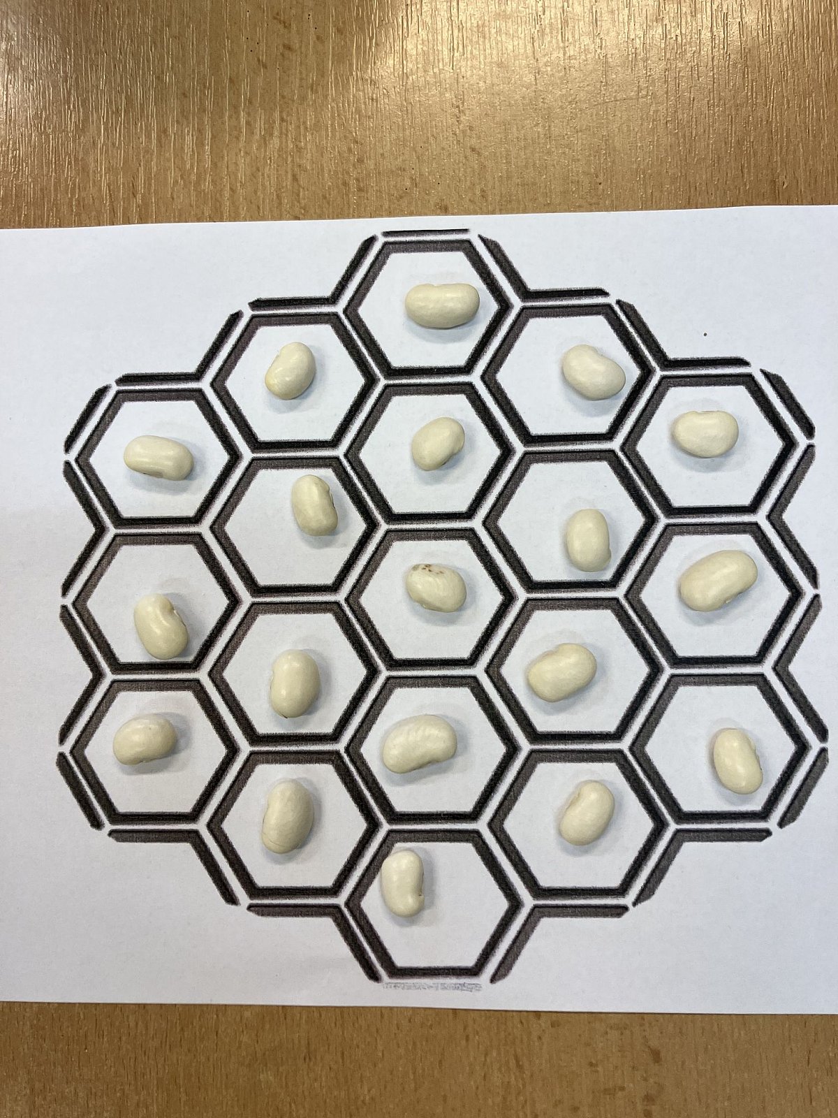 V jednom tahu můžeme vzít jednu, dvě nebo tři fazolky (dvojice musí být vedle sebe, trojice musí být do trojúhelníku)