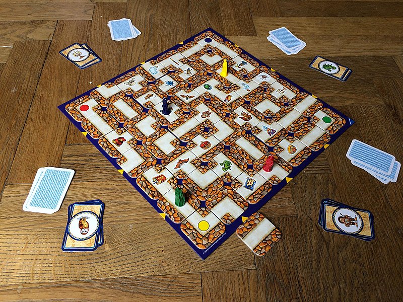 Labyrinth již v roce uvedení na trh (1986) získal prestižní ocenění „Spiel des Jahres“ a dodnes je oblíbenou deskovou hrou napříč generacemi. Na začátku hry si hráči mezi sebou rozdají karty s obrázky, vytvoří z nich balíčky a neukazují je ostatním. Na herní ploše je rozmístěno 16 nepohyblivých součástí labyrintu. Zbývající destičky jsou pohyblivé a v průběhu hry labyrintem kloužou ve směru naznačených šipek. Jedna destička vždy zůstává mimo labyrint. Hráči se střídají ve vkládání nadbytečné destičky do jimi zvolených řad, čímž pokaždé z druhé strany vysunou jinou destičku a zároveň změní rozložení labyrintu. Nově vysunutou destičku pak přebírá další hráč a vloží ji do labyrintu z jiné strany.
