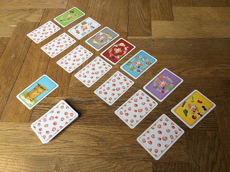 Zbývající balíček obsahuje 49 karet: ke každému ze sedmi témat existuje v balíčku sedm jednotlivých karet (7 x 7 = 49), přičemž na každé „balíčkové“ kartě je zobrazen jeden z obrázků z tematické karty. Před zahájením hry je vedle každé tematické karty vyložena jedna karta z balíčku s odpovídající barvou pozadí, celkem tedy sedm karet s různými barvami pozadí. Všichni hráči se snaží tyto obrázky zapamatovat, karty se pak otočí lícem dolů. Na stole zůstávají lícem nahoru vyložené pouze tematické karty.