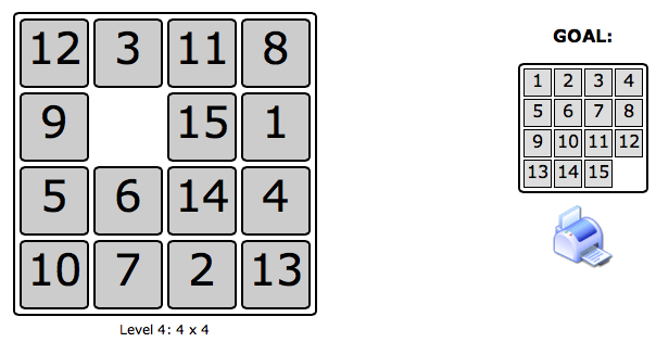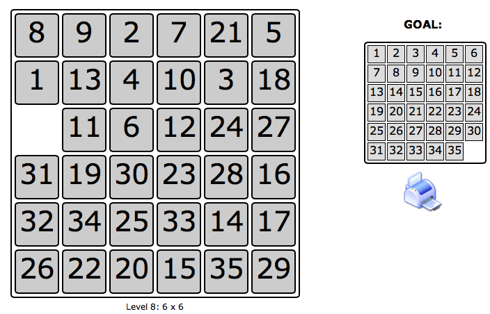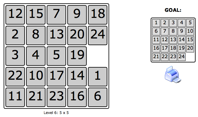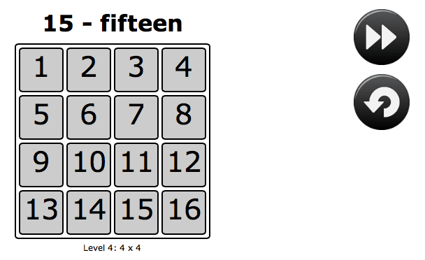 V této on-line verzi hry jsou kromě rozměrů 4x4 k dispozici také rozměry 3x2, 3x3, 4x3, 5x4, 5x5, 6x5 a 6x6. Po úspěšném seřazení kamenů se automaticky doplní poslední kámen a hráči je nabídnuta možnost pokračovat další úrovní nebo si zahrát ještě jednu hru na téže úrovni.
