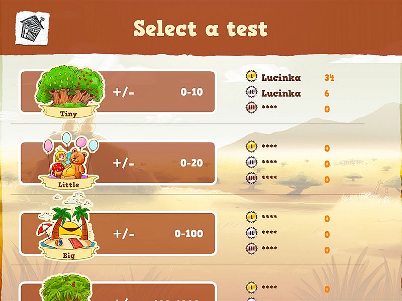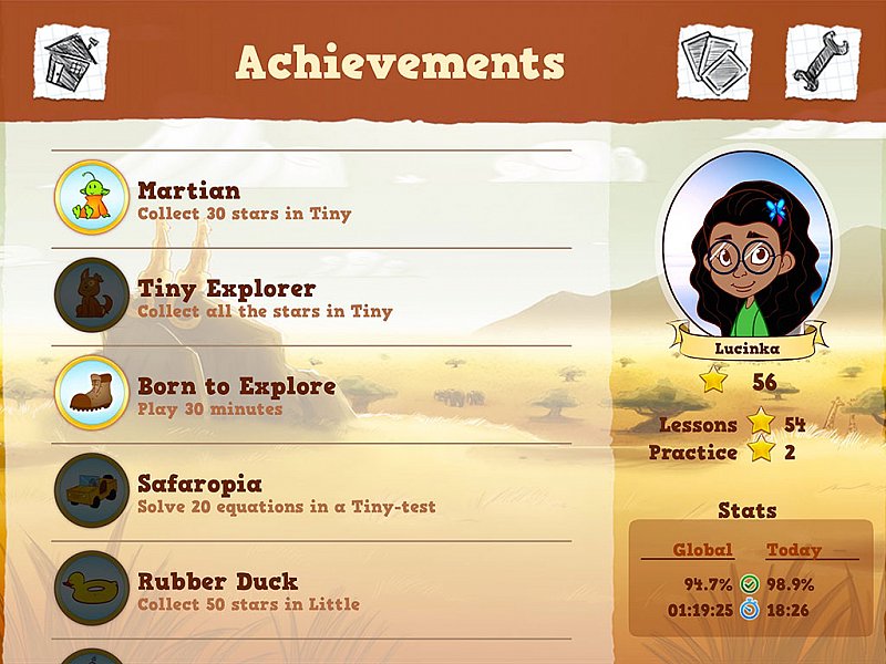 IQ Safari Math umožňuje vytvořit samostatný profil každému dítěti, které aplikaci používá. Rodiče se pak z pozice administrátora mohou podívat na dosažené výsledky každého jednotlivého dítěte.