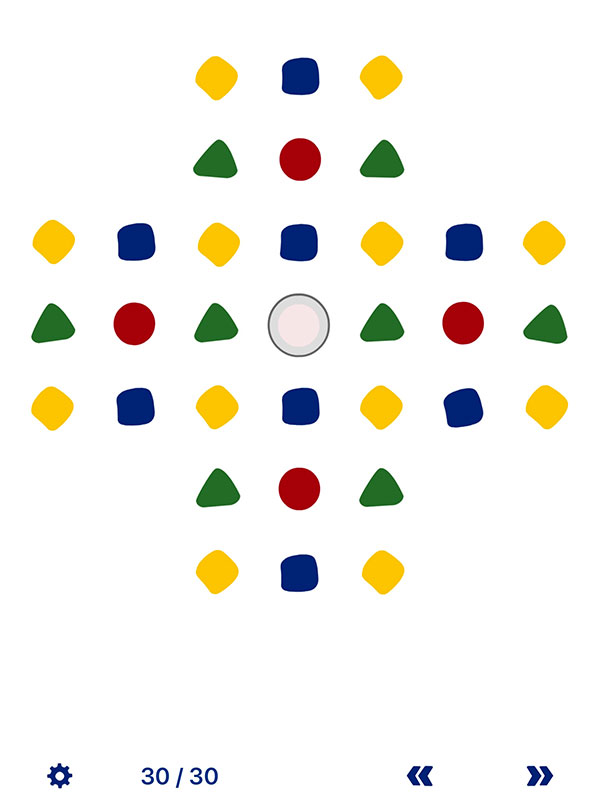 Jednoduchá aplikace, jejíž princip vychází z deskové hry známé jako „solitér“ (solitaire). Jednodušší úrovně hravě zvládnou i šestileté děti, ty složitější naopak dají zabrat i dospělým.