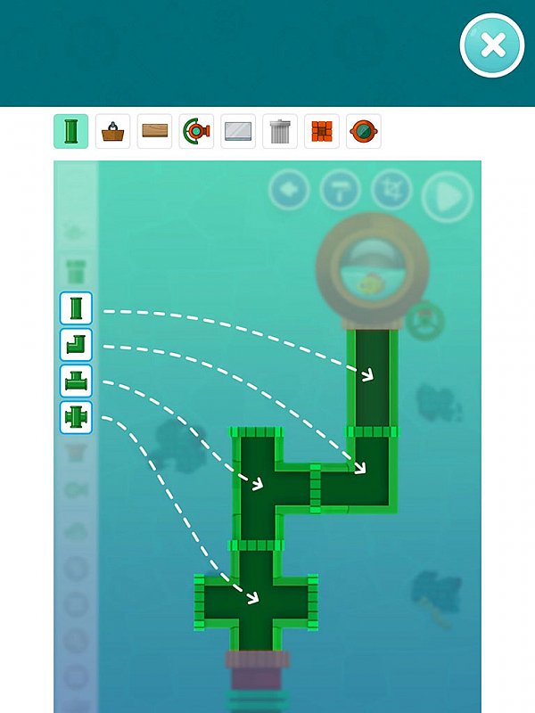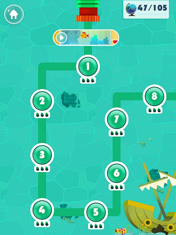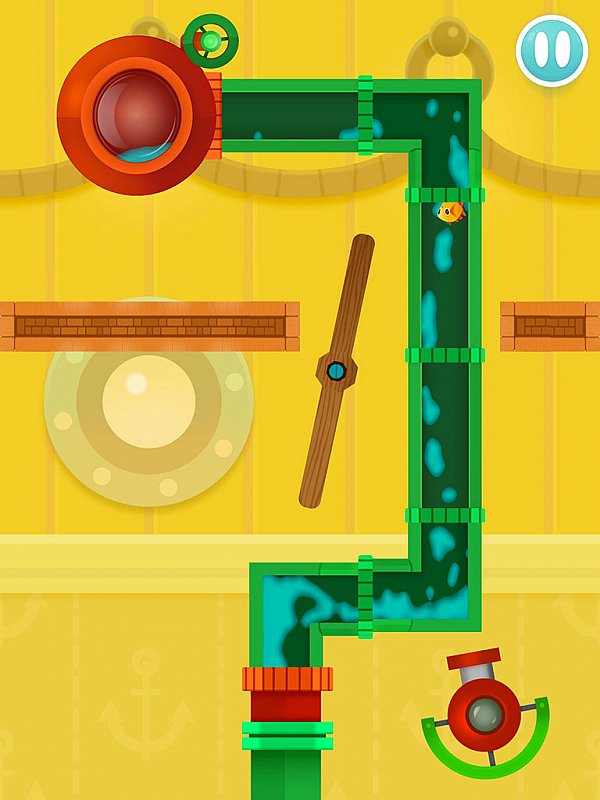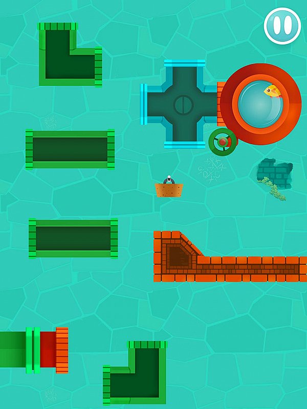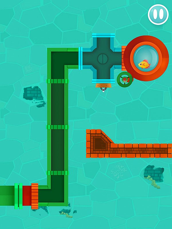 Na začátku hry se naučíte několik základních gest: klepnutím můžete otočit zelené potrubí, přetažením jej můžete připojit k jinému potrubí. Jakmile si natrénujete tyto základní dovednosti, v další úrovni hry zjistíte, že je potřeba naklonit tablet či telefon, abyste přelili vodu správným směrem a rybičku i vodu dostali tam, kam potřebujete.