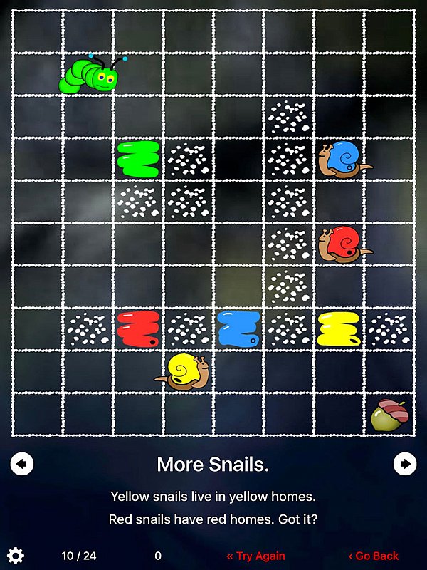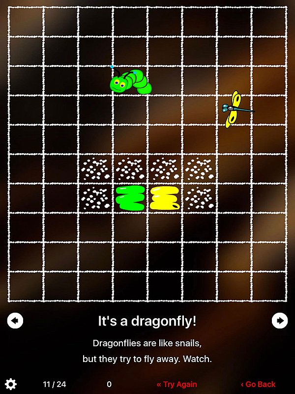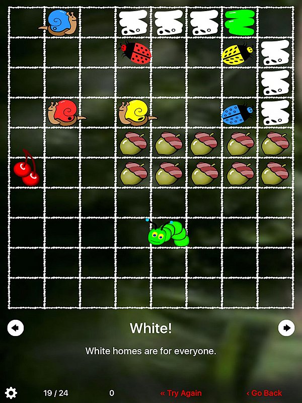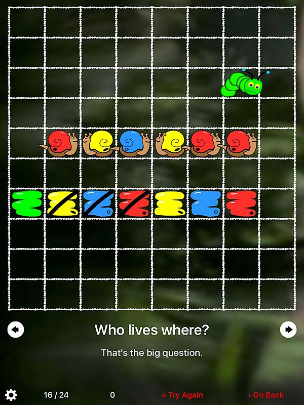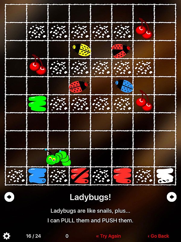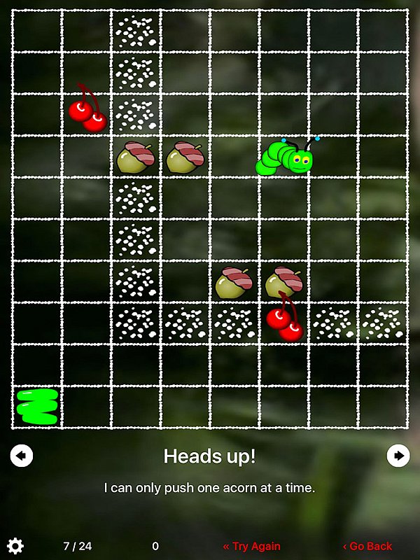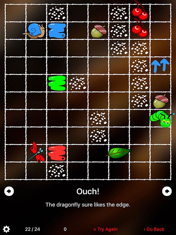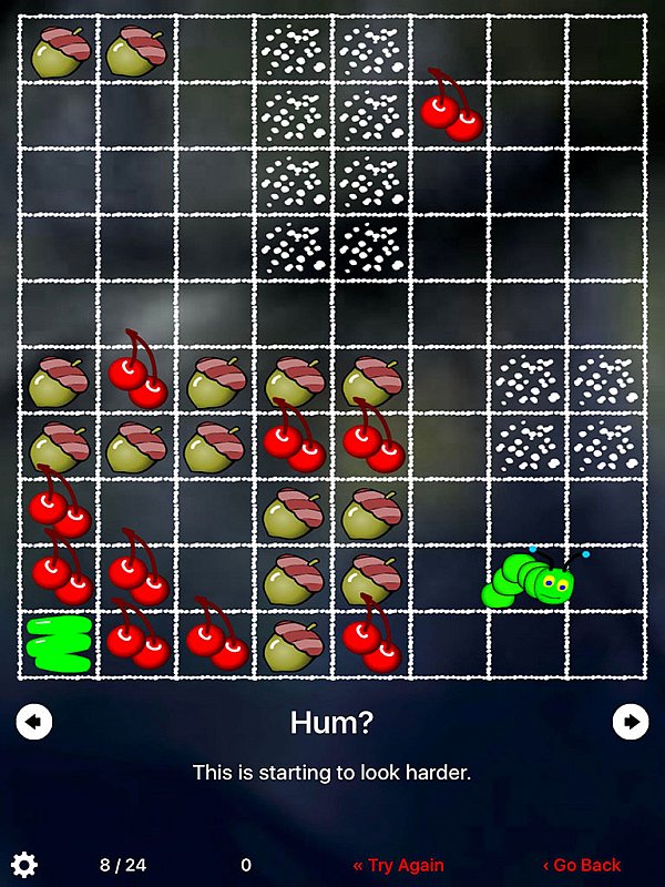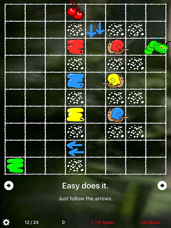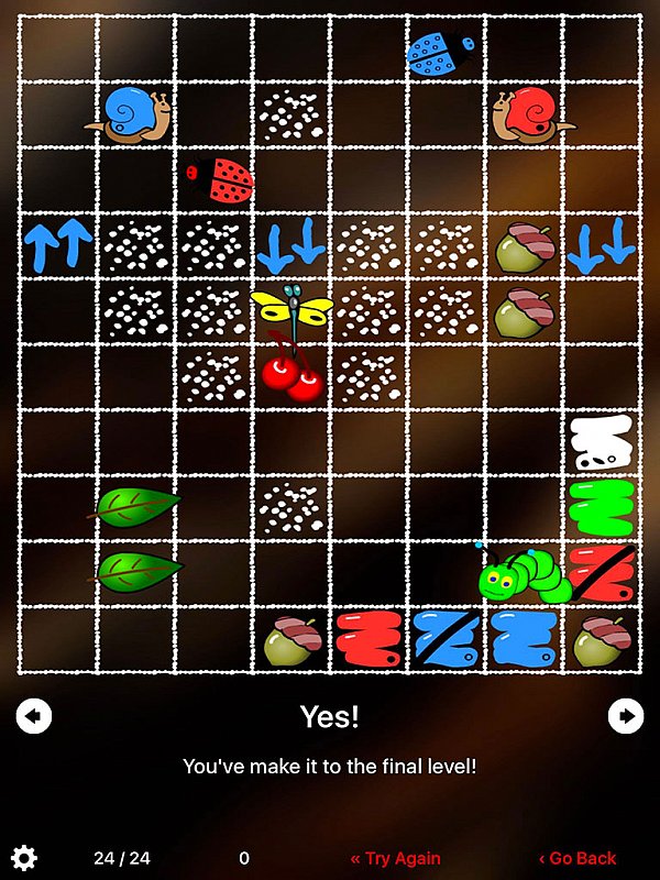 Jednoduchá, přesto velmi vydařená aplikace. Hráč musí pečlivě plánovat cestu píďalky, aby splnila všechny úkoly a potom se sama dostala domů.