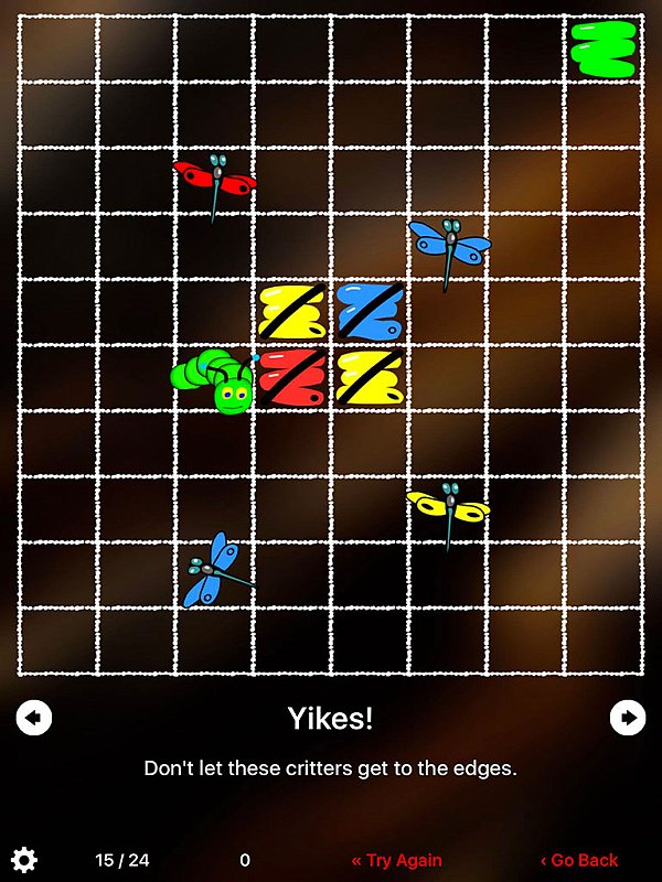 Udělá-li hráč během řešení dané úlohy nějakou chybu, může buď vzít svůj krok (nebo i více kroků) zpět klepnutím na nápis „Go Back“, případně může celou úlohu restartovat klepnutím na „Try Again“.