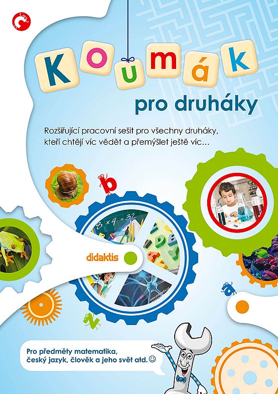 Pracovní sešit Koumák pro druháky je vhodným doplňkem k běžným učebním materiálům pro vzdělávací oblasti Člověk a jeho svět, Český jazyk a literatura a Matematika a její aplikace a lze ho využít jak ve výuce, tak i ve volném čase. Pracovní sešit obsahuje komplexnější a náročnější úlohy, které jsou vhodné pro bystré a zvídavé děti jako nástavba k běžným úlohám a koncipované tak, aby dětem dávaly smysl, bavily je a byly pro ně výzvou.