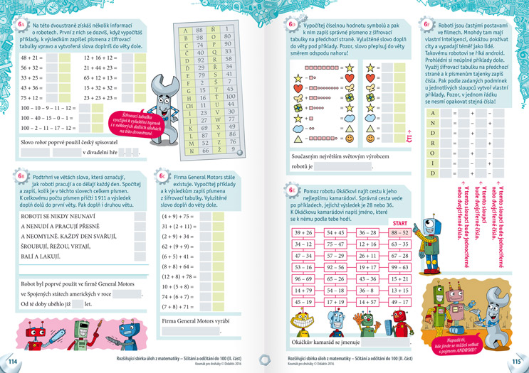Vedle toho se v pracovním sešitě objevuje řada zajímavých šifer a také sady příkladů, jejichž výsledky dětem umožní vyluštit tajenku, objevit obrázek nebo najít cestu bludištěm.